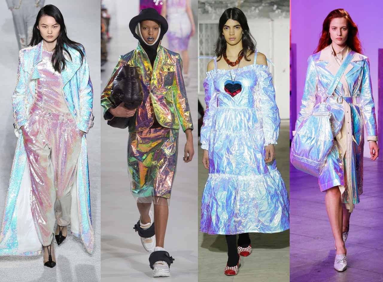 今季の注目素材は、フューチャリスティックな印象を吹き込むホログラム。なかなか取り入れるのが難しいホログラムを、大胆にも全身で身に纏ってインパクトを放つのが今季の気分。アイテムでは、ジャケットからバッグ、ワンピースなど豊富。