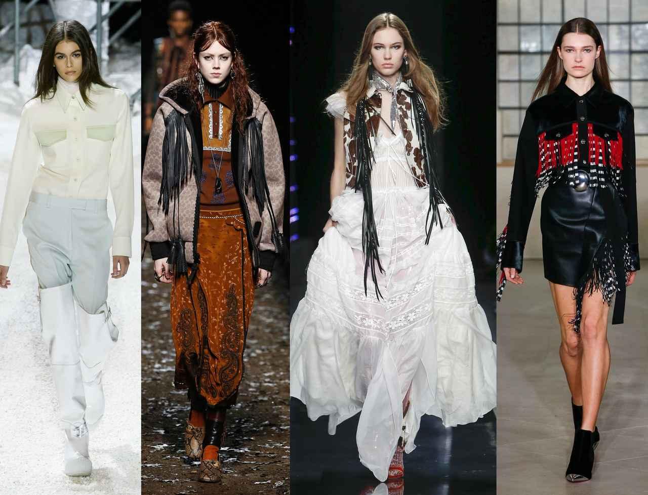 2018秋冬コレクションでどのブランドも積極的に取り入れていたのは、ウエスタンスタイル。アニマル柄アイテムやフリンジ、ウエスタンブーツなど、カウボーイにインスパイされたルックが目立った。アクセサリーまでウエスタン調のもので、思い切り強調させるのも◎。Calvin Kleinはウエスタンスタイルを見事スタイリッシュに落とし込んだ。