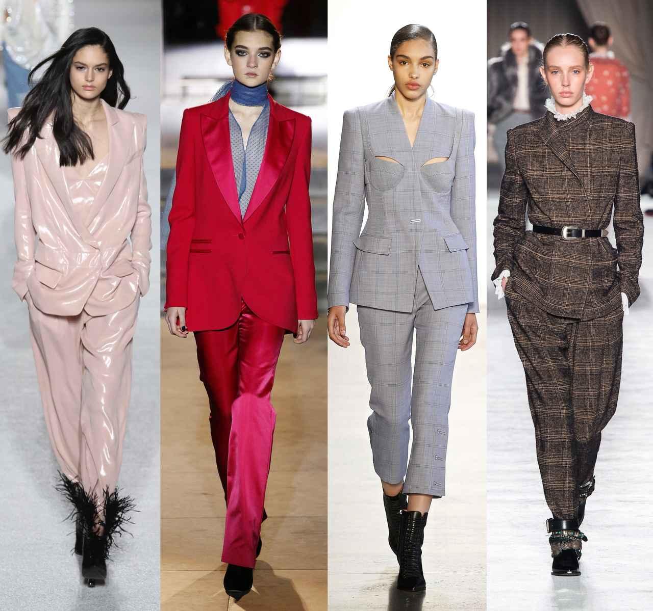ここ数シーズン続けて相変わらず人気が健在なのが、ジャケットとパンツがセットになったスーツルック。今季は、グレンチェック柄から、煌びやかなシルク、そしてパテントレザーまで違った素材でも楽しんで。