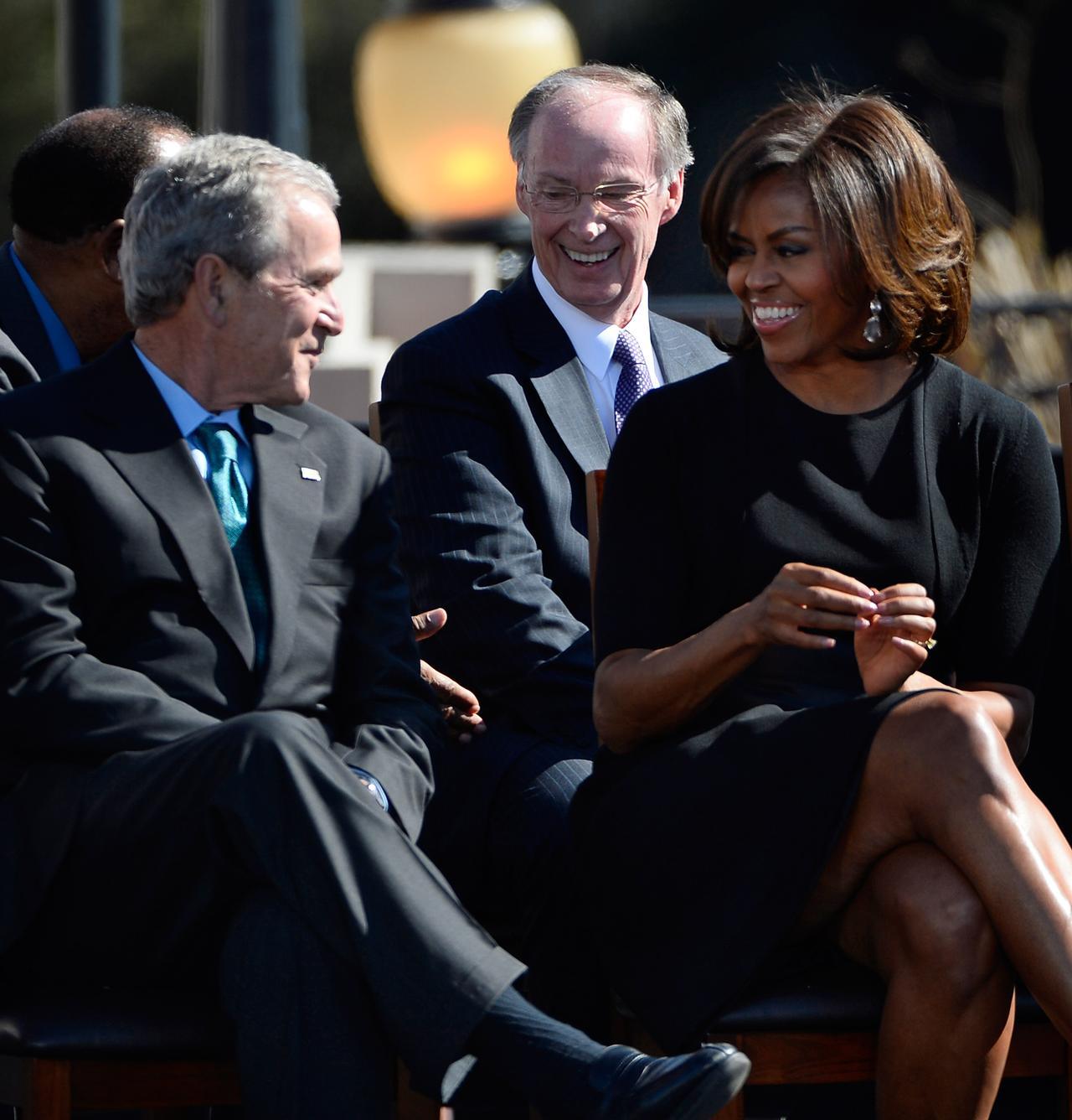ちなみに、ブッシュ元大統領は公式イベントでミシェル夫人の隣に座ることが多く、ミシェル夫人との友情について米Peopleに「彼女(ミシェル夫人)は、僕のユーモアが好きなんだ。僕のユーモアが好きな人は、いち早く仲良くなるよ」と、好意的な発言をしていた。(フロントロウ編集部)