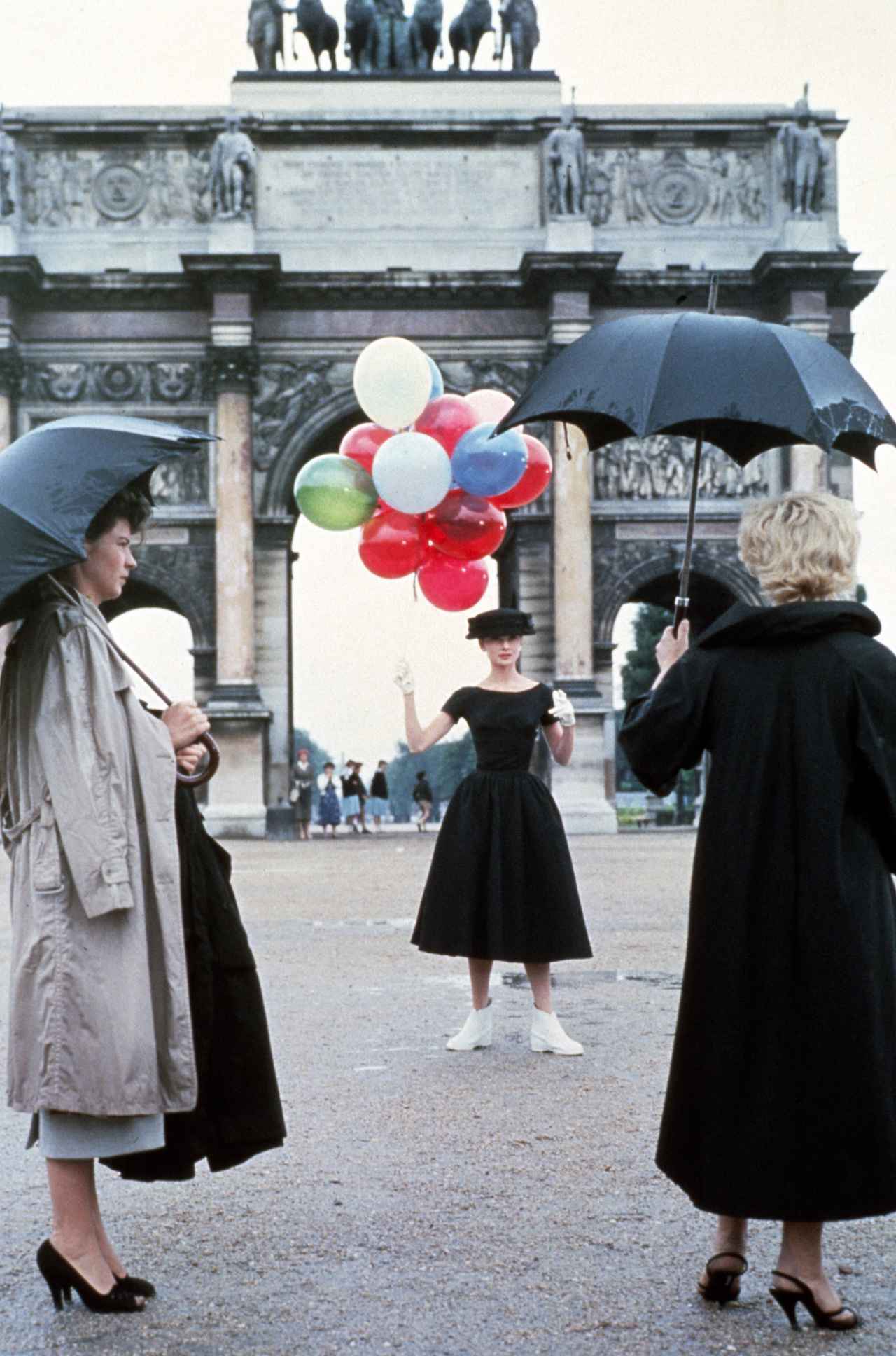 ファッションの観点から見た今作の見どころは、パリでの撮影シーン。ジバンシィがデザインした華やかな衣装に身を包み、撮影に挑むオードリー演じるジョーの姿と、わくわくするような演出に心踊らされる。ルーブル美術館のサモトラケのニケの前で、真っ赤なロングドレスを着たジョーが、自信に満ちた笑顔で階段から「私を撮って!」と降りてくるシーンは息をのむ美しさ。