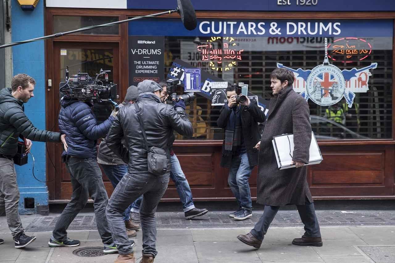 撮影風景。昨今、デンマーク・ストリートの周辺地は再開発が進められているが、これを阻止すべく、多くのミュージシャンや俳優らが反対運動に参加していることでも有名。Photo: ©2018 Home Box Office, Inc. All rights reserved. HBO® and related channels and service marks are the property of Home Box Office, Inc.
