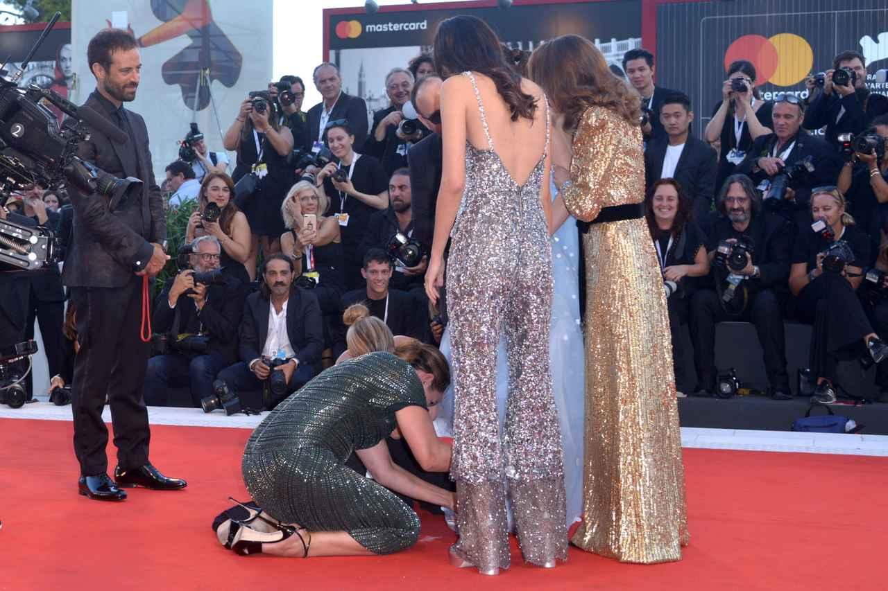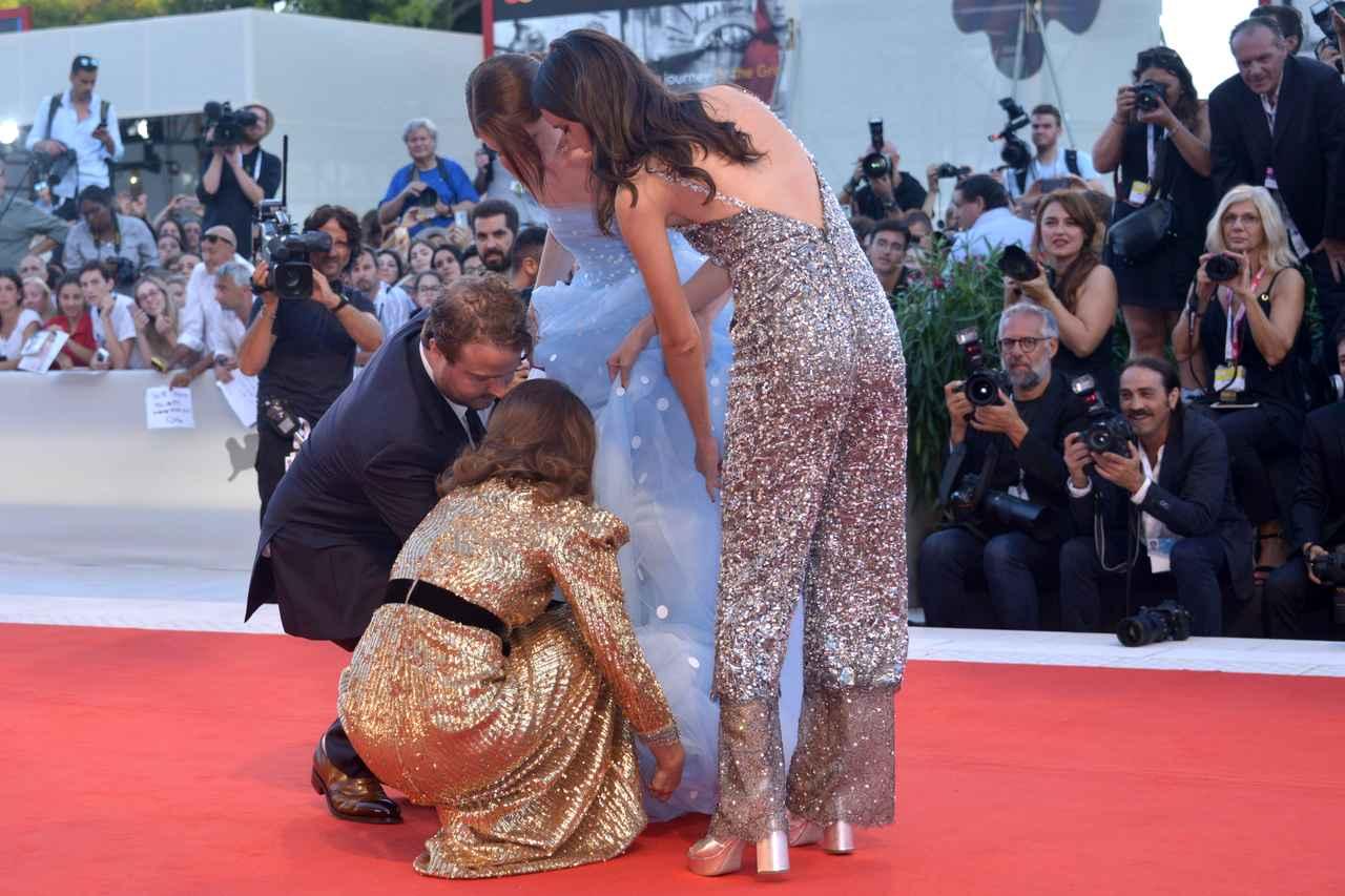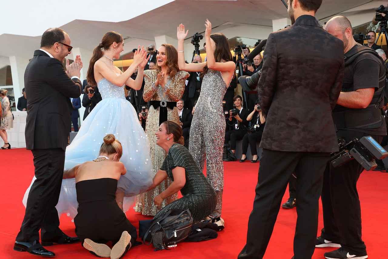 すると、すかさずナタリーがラフィーのドレスをまくって直してくれたのだ。ナタリーだけでなく、一緒にいたステイシーと監督のブラディ・コーベットもラフィーを支えてあげるという素晴らしいチームワーク。
