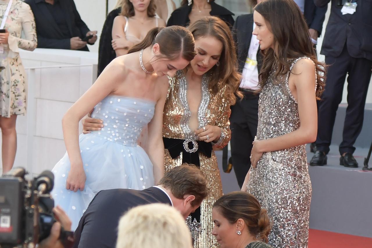 女優のナタリー・ポートマンがベネチア国際映画祭のレッドカーペットで、ドレスにつまずいてしまった後輩女優に対してファインプレーを見せた。
