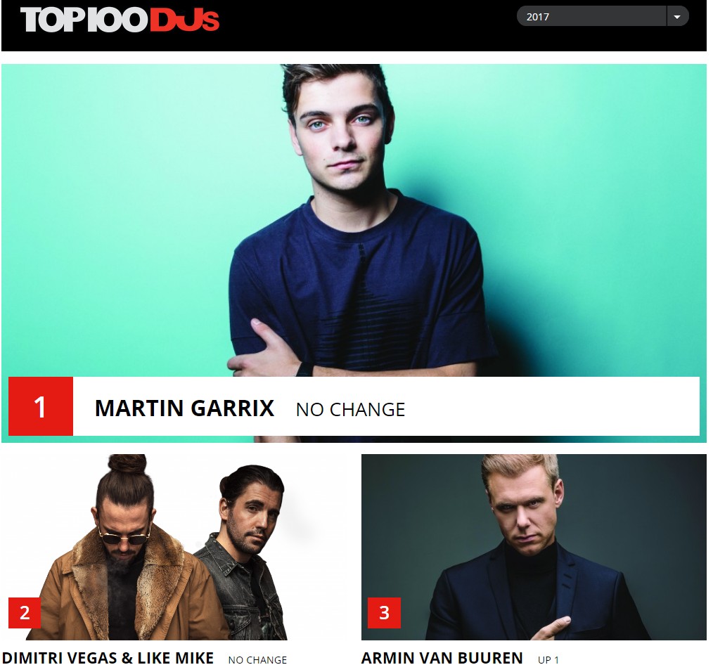 毎年DJ Magが主催で行っている世界のトップDJを決めるTOP 100 DJs。全世界から100万人ほどが毎年このランキングのために投票しており、毎年その結果に多くの注目が集まる。昨年は1位にマーティン・ギャリックス、2位にディミトリ・ヴェガス&ライク・マイク、3位にアーミン・ヴァン・ブーレンが輝いている。