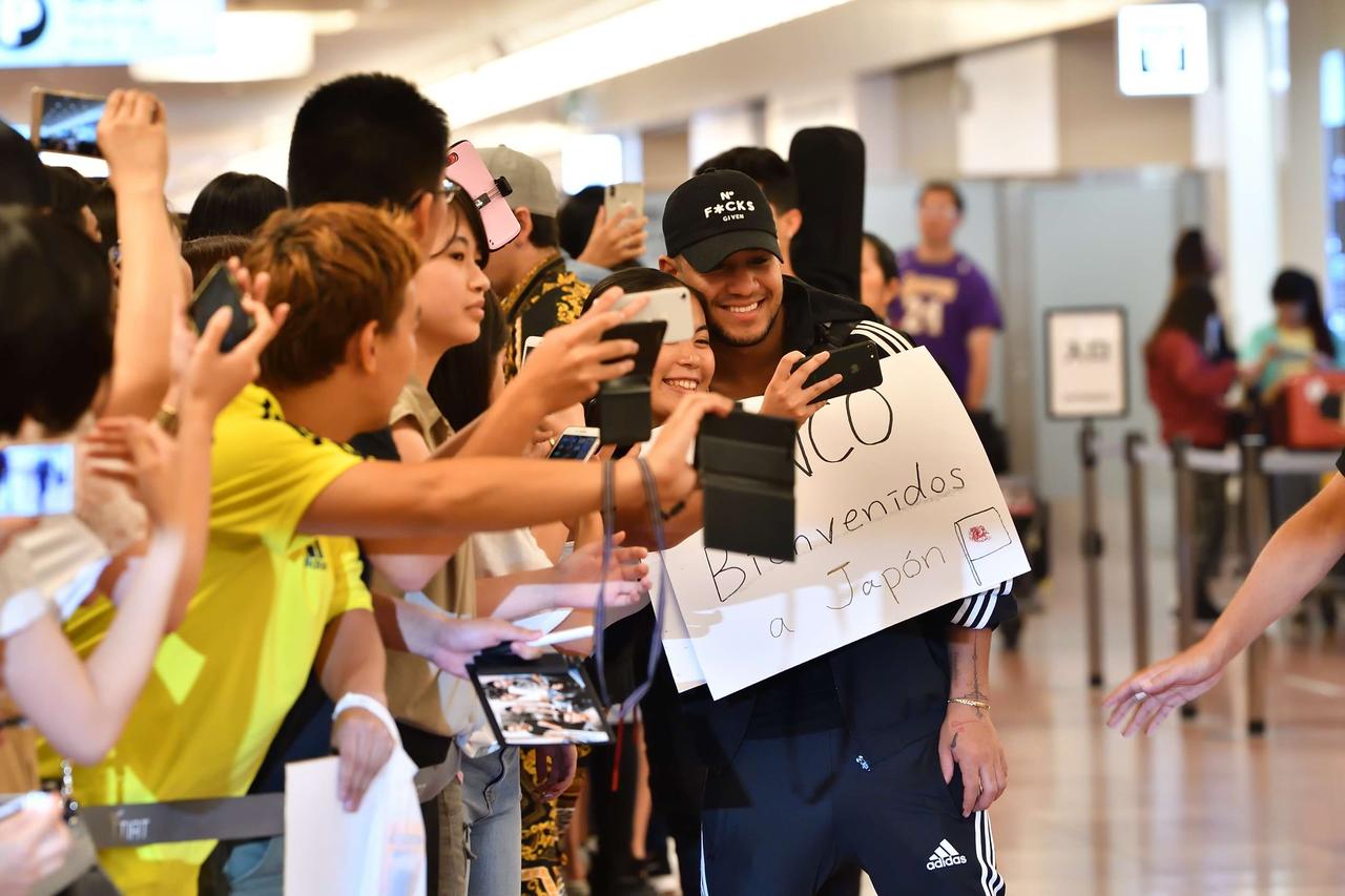 この夏、ヨーロッパ/南米/北米と休む暇なく世界中を飛び廻る毎日を送るCNCOは、約20時間のフライトを経て羽田空港に到着。全員がアジア圏で初となる日本の地を踏んだCNCOのメンバーは空港に集まった100名のファンから熱烈な歓迎を受け、疲れも見せず笑顔でサイン、ハグ、セルフィーなどに応じ、「僕たちのことを応援してくれてありがとう。こんなに空港に集まってくれるなんて信じられないよ。もっとたくさんのファンに会えるのを楽しみにしてます。ダイスキ!」とメッセージを送った。