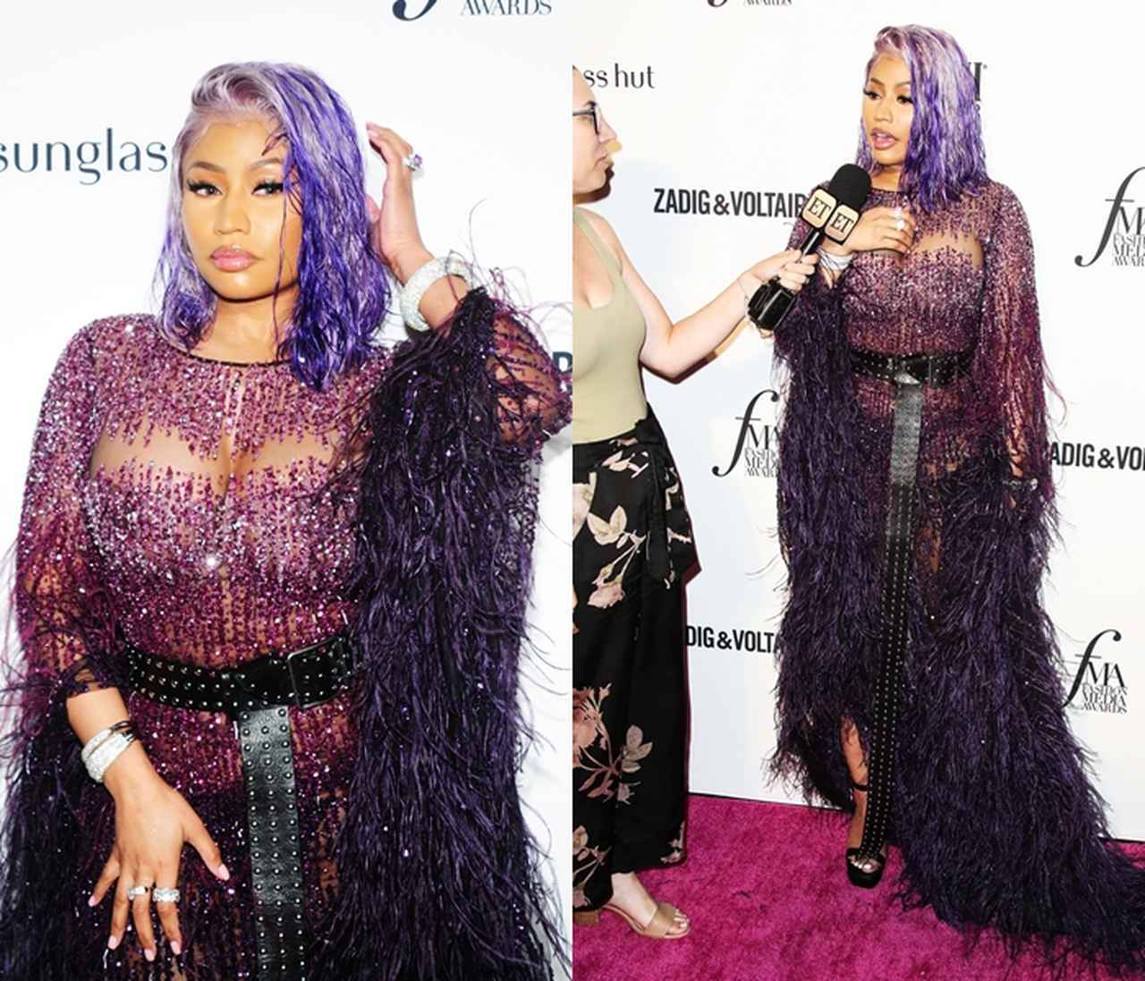 ニューヨーク・ファッションウィーク中に登場したファッション・メディア・アワードのレッドカーペットでET Onlineのインタビューに答えたニッキー。