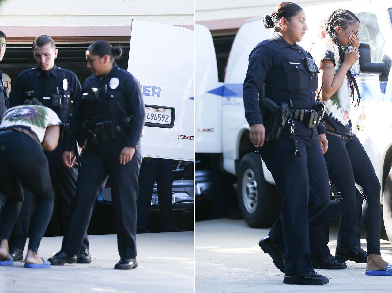 カリフォルニア州サンフェルナンド・バレーにあるマックの自宅から遺体が運び出される際、友人と思われる女性が号泣。