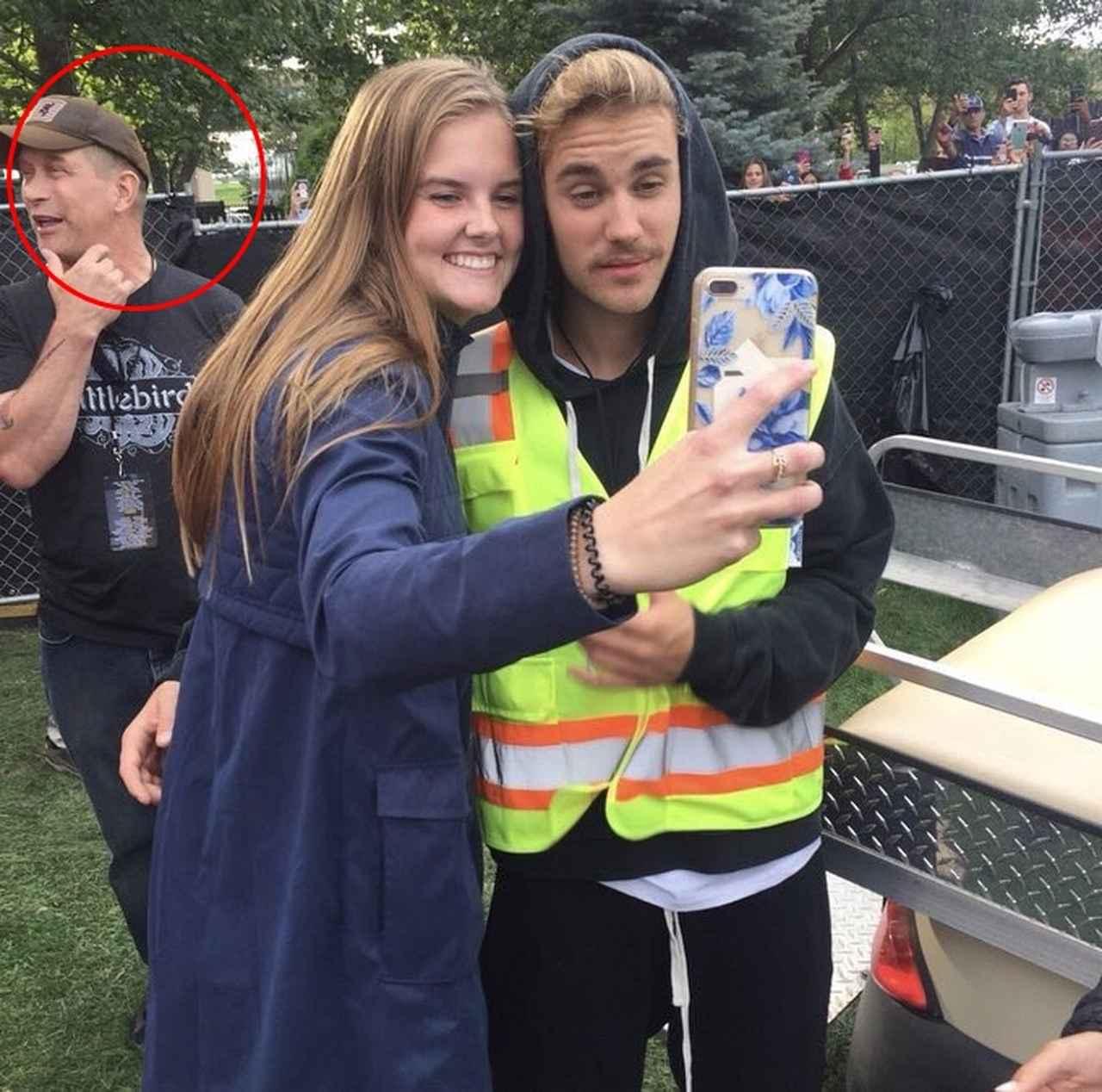 ファンと記念撮影をするジャスティンの背後にスティーヴンの姿を発見。