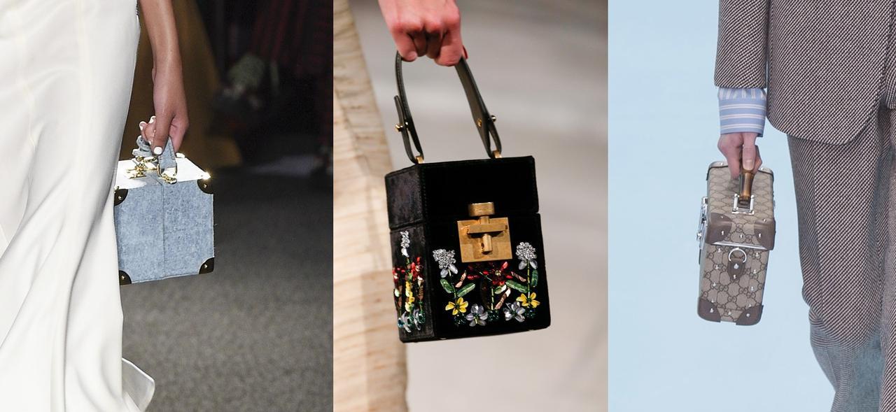 さまざまなタイプのバッグがランウェイで見られたなかで、とくに目立ったのがボックス型バッグ。Gucciのスーツケースを縮小したデザインや、Oscar de la Rentaの花柄が刺しゅうされたボヘミアンチックなデザインなど、種類は豊富。