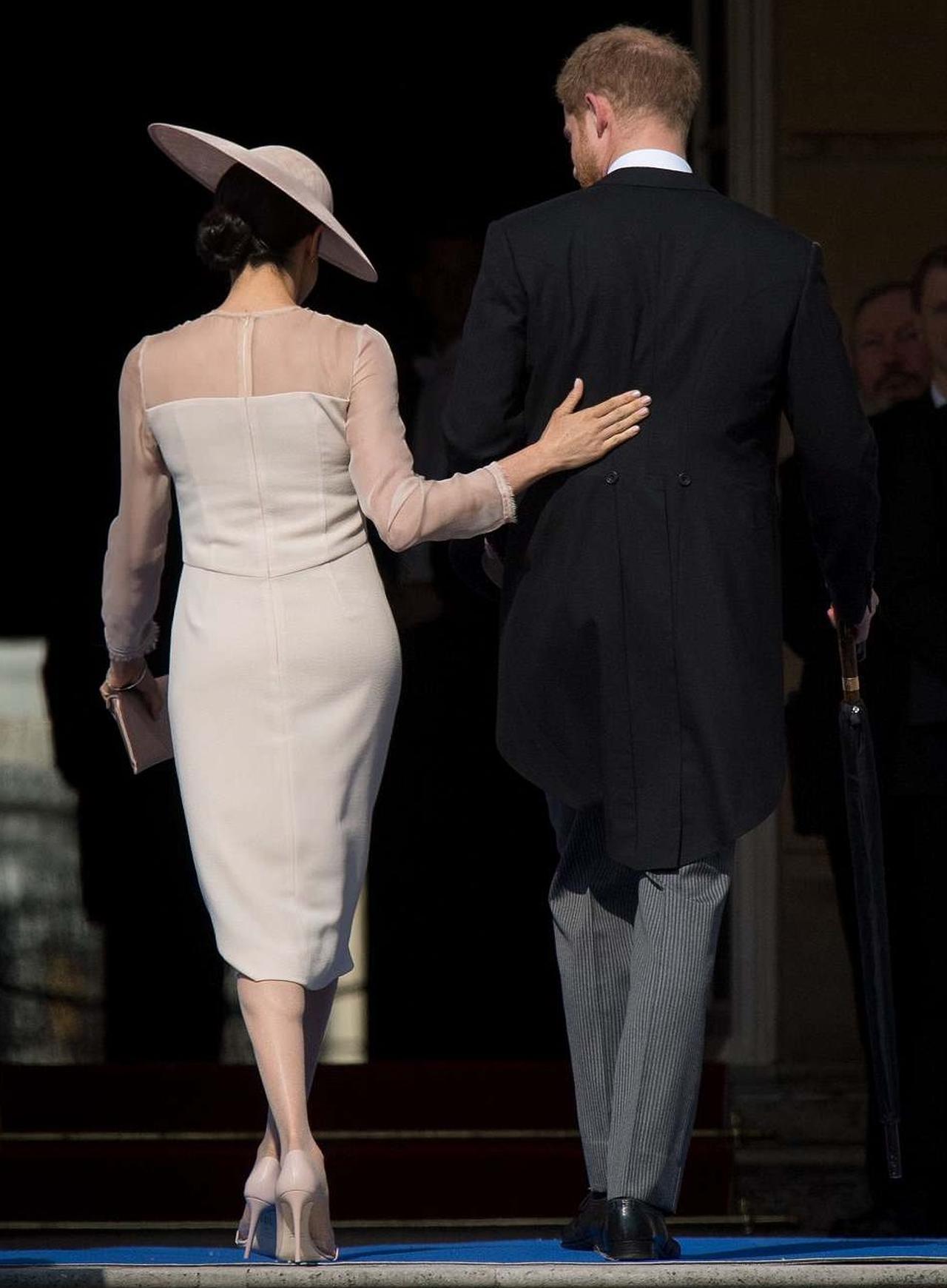 さらに、ヘンリー王子よりも半歩ほど下がっているメーガン妃の姿を後ろから見てみると、多くの場合、彼女の手はヘンリー王子の背中に添えられ、まるでエスコートするかのようにそっと前へと押し出しているのがわかる。
