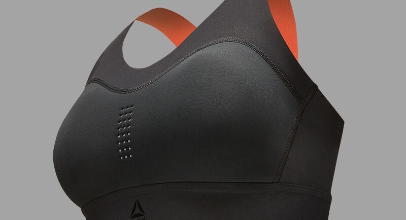 リーボックが3年の歳⽉を経て共同開発のもと、今年の秋冬に誕⽣した「ピュアムーブブラ」。防弾チョッキやNASAの宇宙服にも使⽤される特殊素材を練りこんだ⽣地が、激しい運動から緩やかな運動まで、様々な⾝体の動きに対応する。