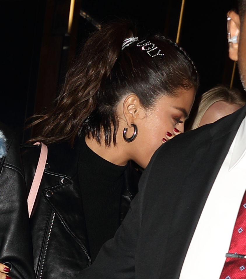 注目してほしいのはセレーナのヘア。ただのポニーテールかと思うが、近くで見てみるとラインストーンで右側の頭に「UGLY(醜い)」と書かれているのが分かる。
