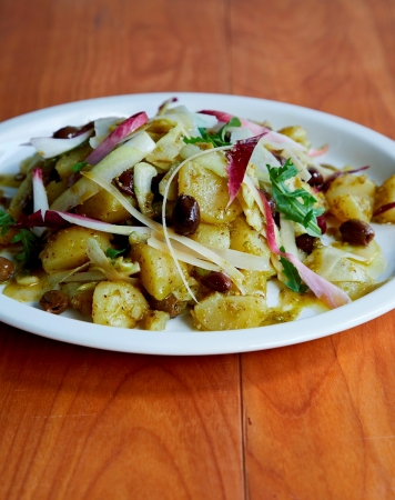茹でたジャガイモにピスタチオソースをたっぷり絡めて、いつもとひと味ちがう、濃厚なコクのポテトサラダに。魚介のカルパッチョにもおすすめ。