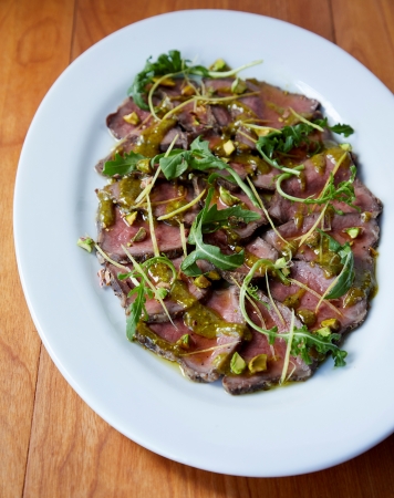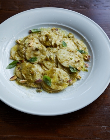 ピスタチオのまろやかな甘みとコクのベースに、フレッシュなバジルと食欲をわかせるガーリックの香り、グラナパダーノのミルクの旨味、がバランス良く組み合わさったことによって生まれる豊かな味わい。前菜からメインディッシュまで幅広く使える1本。
