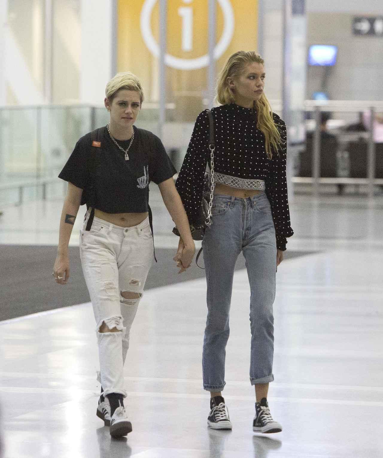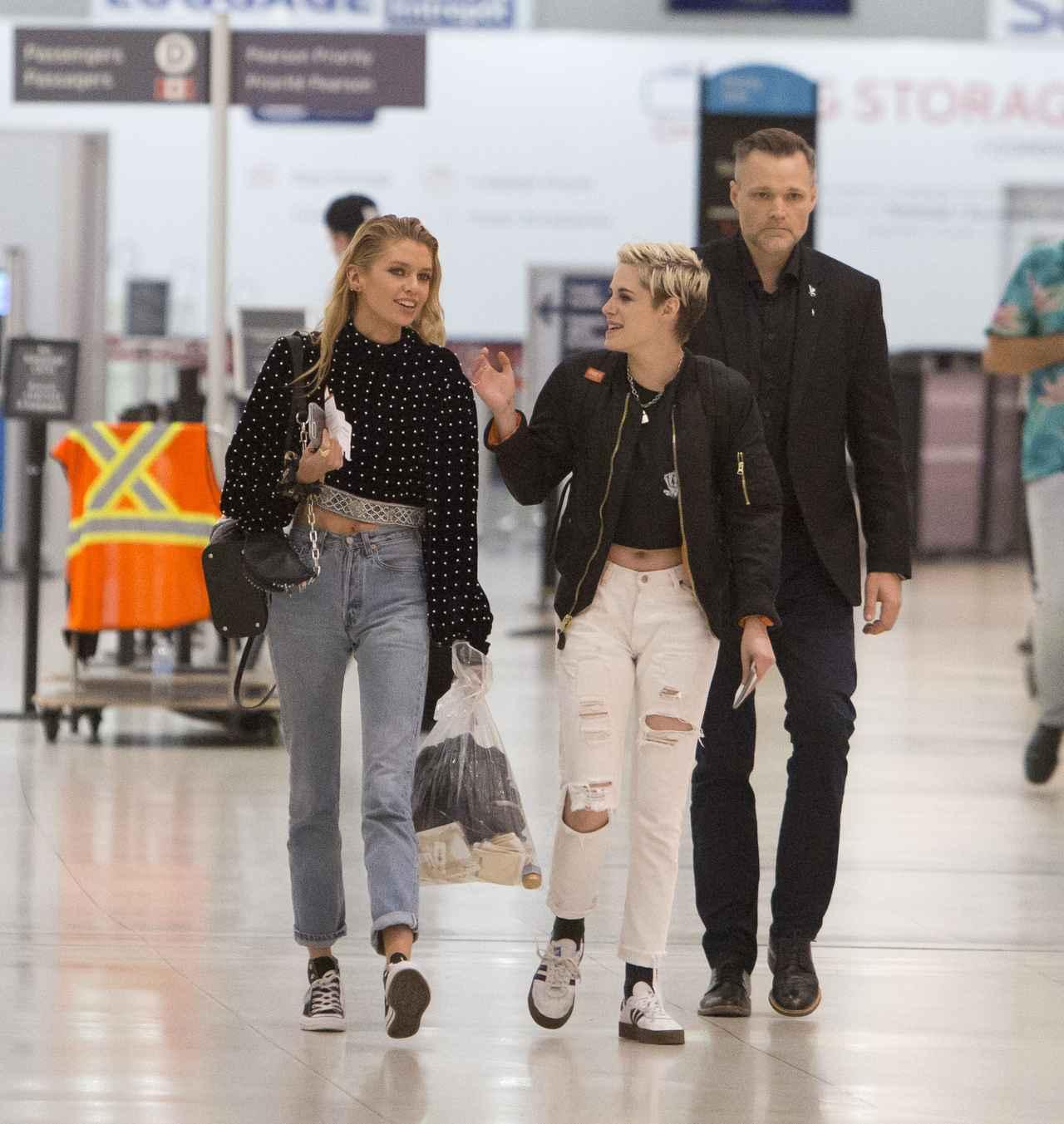女優のクリステン・スチュワートと恋人でモデルのステラ・マックスウェルが、空港で珍しくラブラブな姿を見せた。
