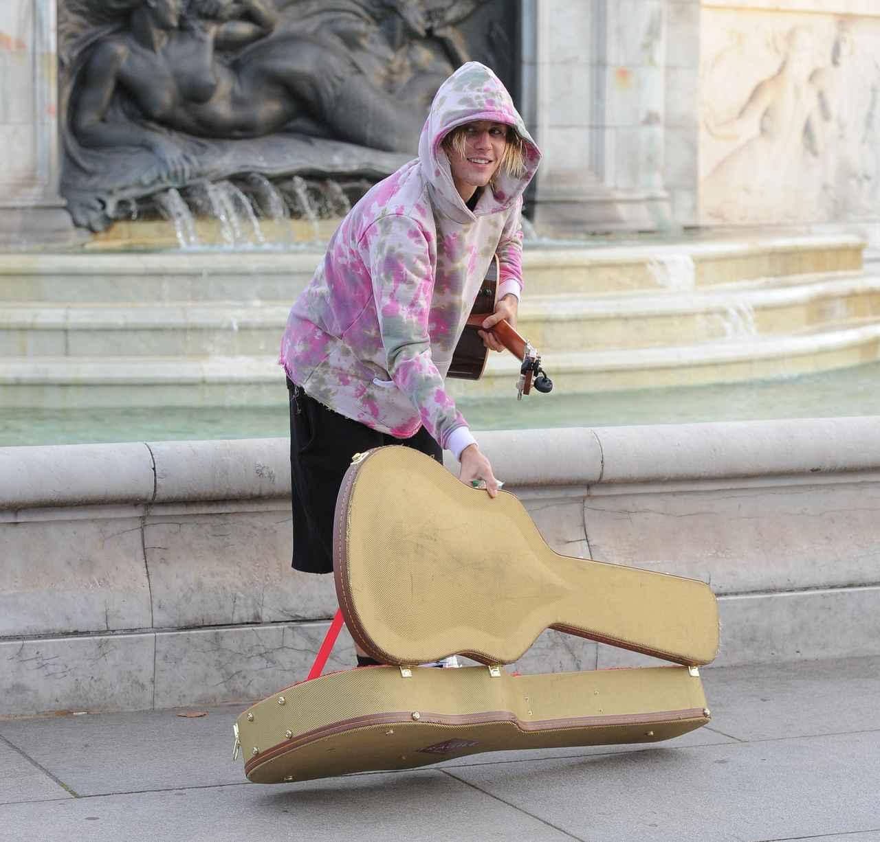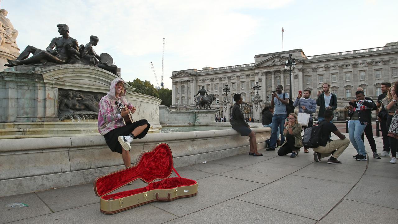 あらかじめ計画していたのか、エリザベス女王の住まいであり、ロンドンきっての観光名所としても知られるバッキンガム宮殿に到着すると、ジャスティンがギターケースから“マイ・ギター”を取り出し…。