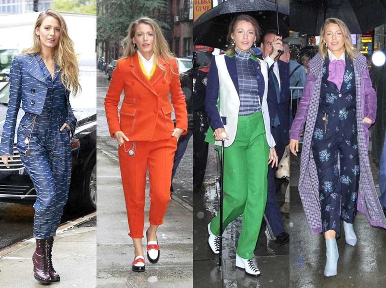 主演映画『ア・シンプル・フェイバー』のプロモーション活動中の衣装は「スーツのみ」と決めているらしく、ドレスやスカートなどは一切着用せずに、連日マスキュリンなスーツばかり着用している女優のブレイク・ライブリー。