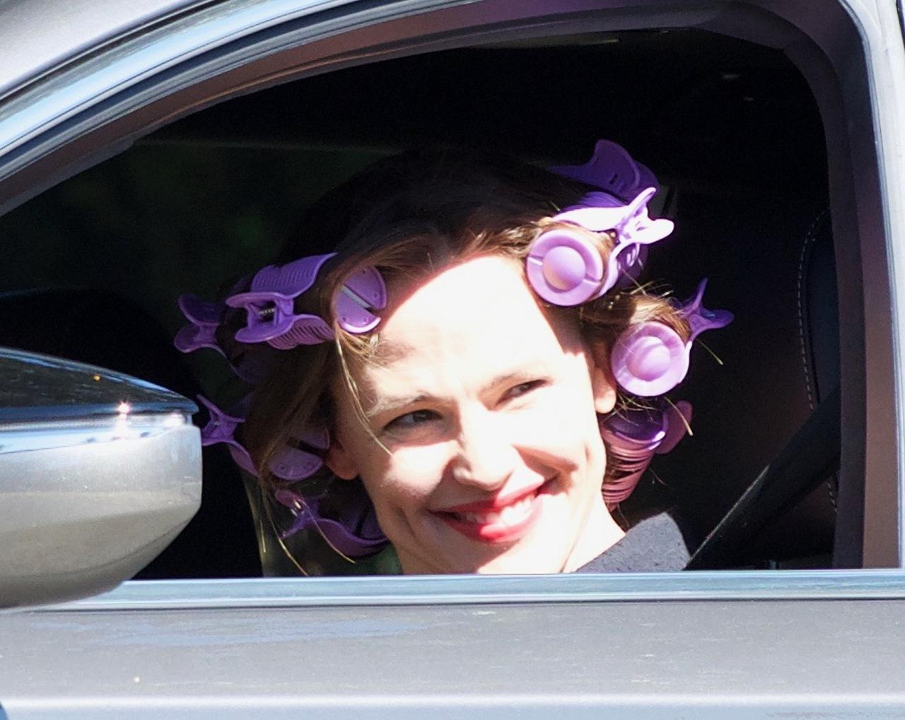 なんと、ジェニファーの頭についていたのは無数のヘアカーラー。この日、家から子供の学校まで車で迎えに行ったジェニファーは、車内でもずっとヘアカーラーをつけており、その姿をパパラッチに激写された。しかし恥ずかしがるかと思いきや、ジェニファーは積極的にパパラッチに笑顔で対応。