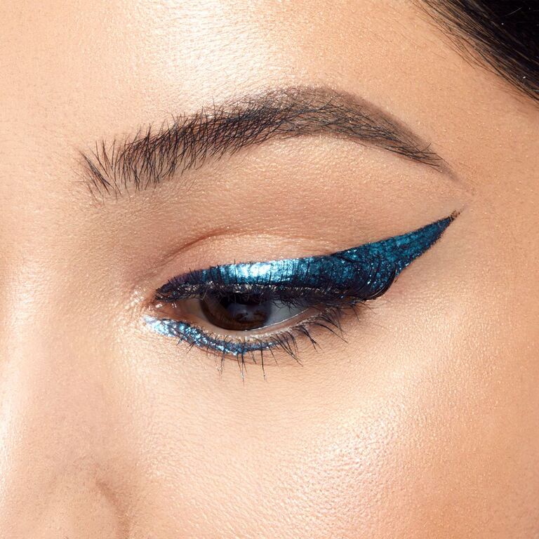 マットなリキッドアイライナーと偏光パールが輝くトップコートからなるデュアルエンドのアイライナー。目立ちたいなら、深いマットなカラーで瞼を囲い、パーリーなトップコートでグラデーションをつくるように埋めていくのがオススメ。