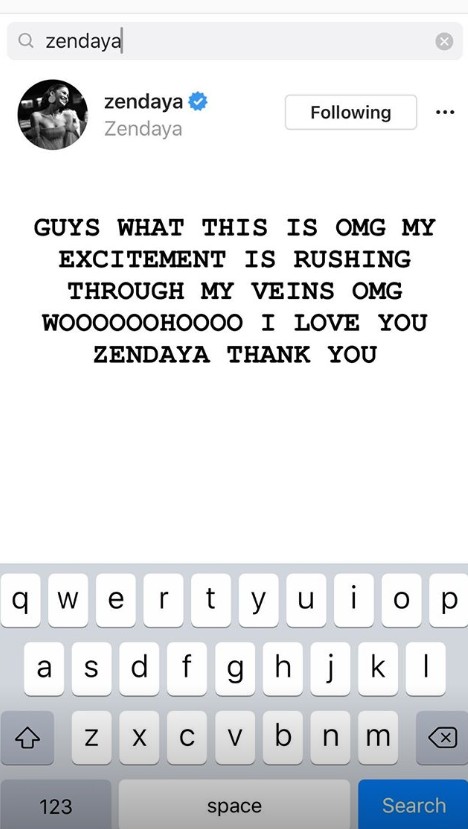ゼンデイヤからノアの大好き発言に反応はあったものの、まだインスタグラムでフォローされてはいなかったノア。しかし最近、大好きなゼンデイヤがノアをフォロー。これに気付いたノアは、すぐさまゼンデイヤが自分をフォローした証拠をスクリーンショットして、インスタグラムストーリーにアップした。