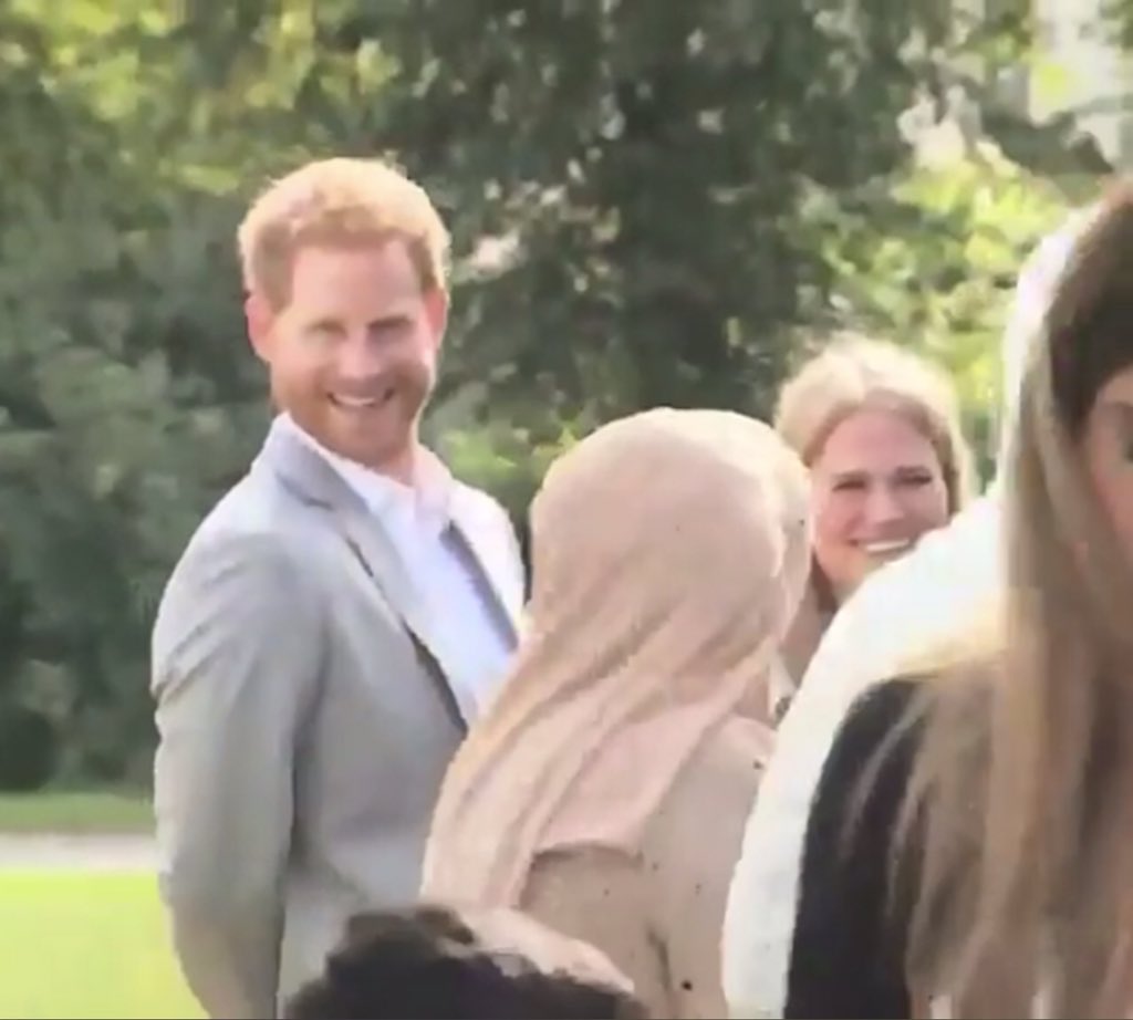 カメラのレンズが自分に向いていることに気づいたヘンリー王子は、「バレちゃったか」とでも言うように、照れたような笑顔を浮かべてカメラ目線をサービス。