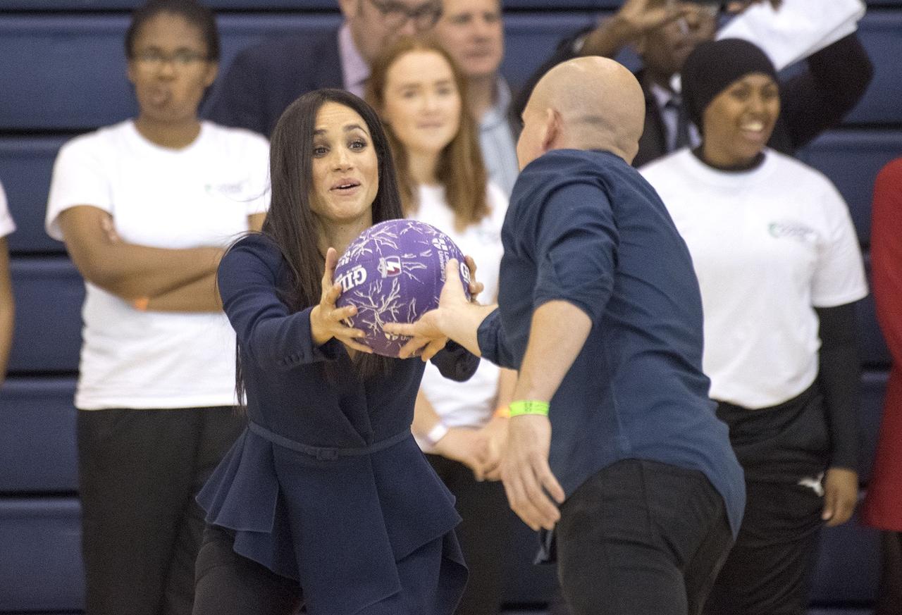 夫妻そろって英国王室基金主催のチャリティプログラム「コーチ・コア(Coach Core)」のアワード授賞式に登場したヘンリー王子メーガン妃。スポーツを通して教育や就労機会の改善を図る同プログラムのイベントでは、参加者たちがスポーツを楽しむのが慣例となっている。