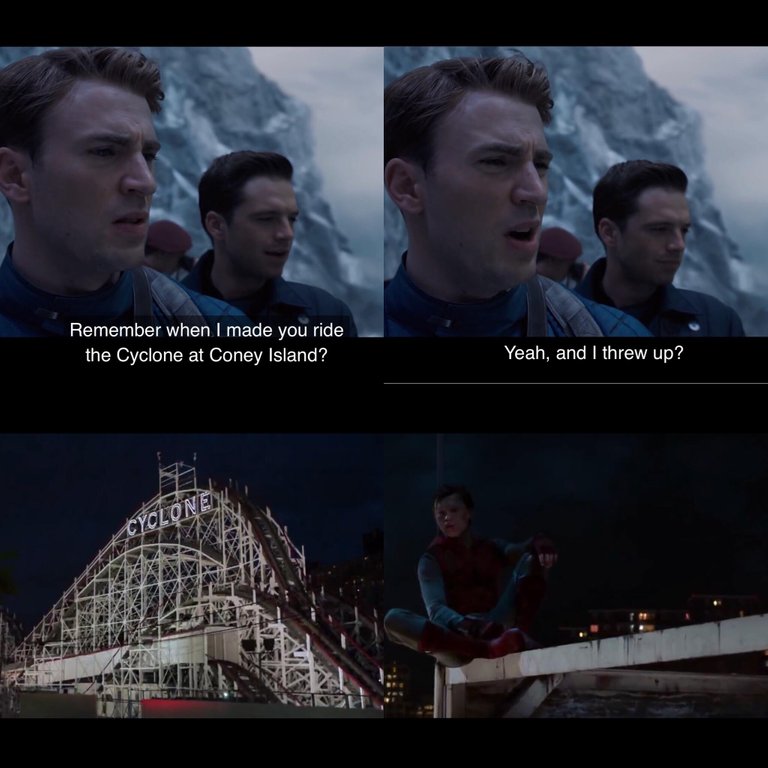 まだスーパーパワーを手に入れる前のスティーブが、ジェットコースターに乗って吐いたというトラウマ的な経験をした思い出の場所サイクロン(Cyclone)が、スパイダーマンのワンシーンでそっこり登場していた。