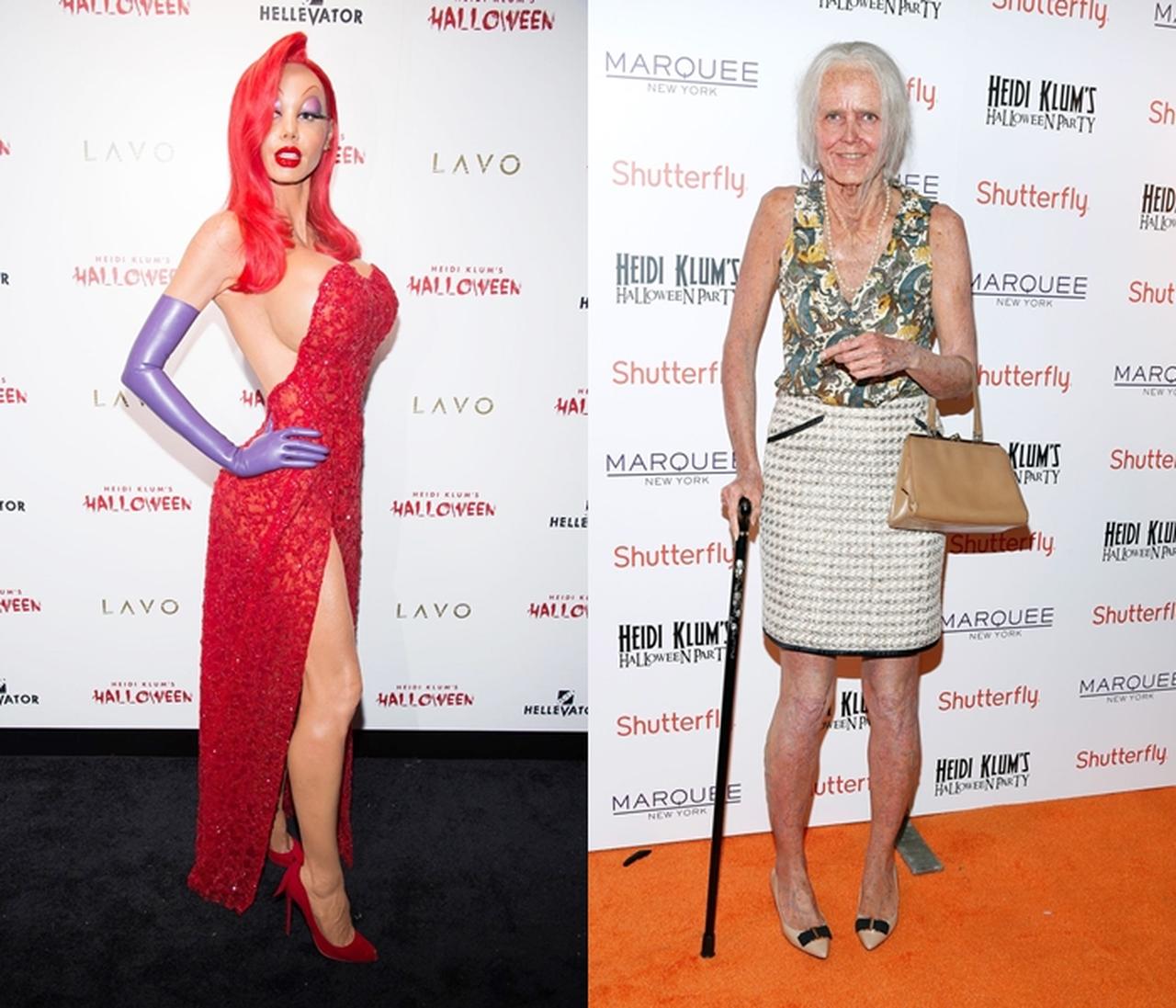 2015年に披露した“ジェシカ・ラビット”と2013年の“老婆”の仮装。