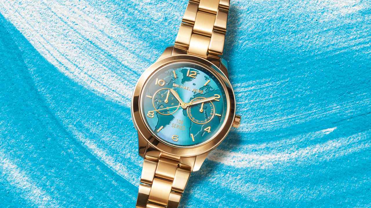 今年はアイコニックな“ランウェイ”ウォッチのデザインで、ゴールドのケースにターコイズカラーの文字盤に世界地図が細やかに施されている。ユニセックススタイルで、日本ではマイケル・コースのライフスタイルストア、およびオンラインストアで展開する。