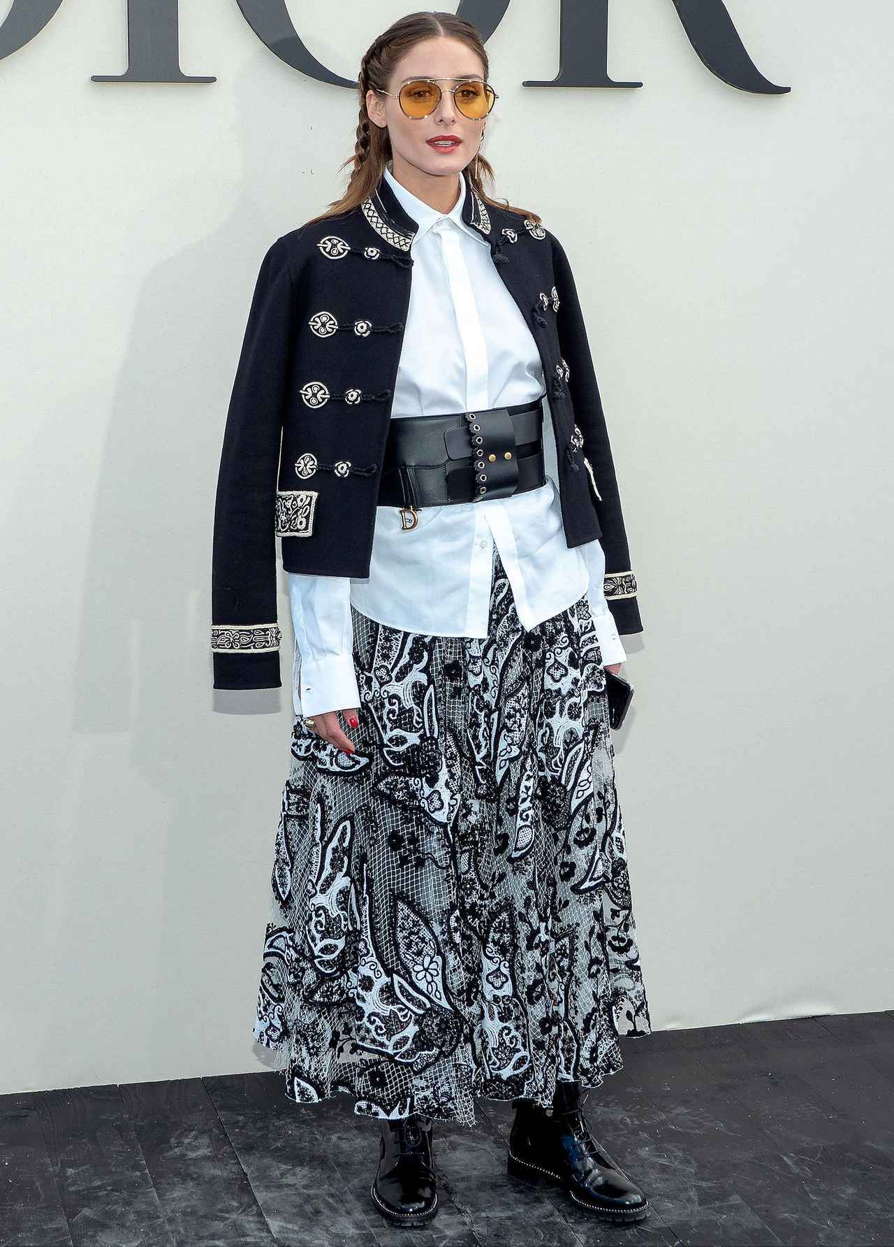 多くのセレブやファッショニスタが駆けつけたDiorのショーにはもちろんオリヴィアも出席。柄スカートに白シャツを合わせ、そこに太ベルトでしっかりとウエストマーク。マリン風のジャケットを肩にかけ、全身モノクロで落ち着いた雰囲気に。