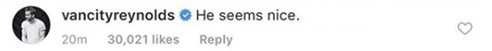 ちなみに、この写真を見たブレイクの夫で、映画『デッドプール』シリーズの俳優ライアン・レイノルズの反応はというと…。