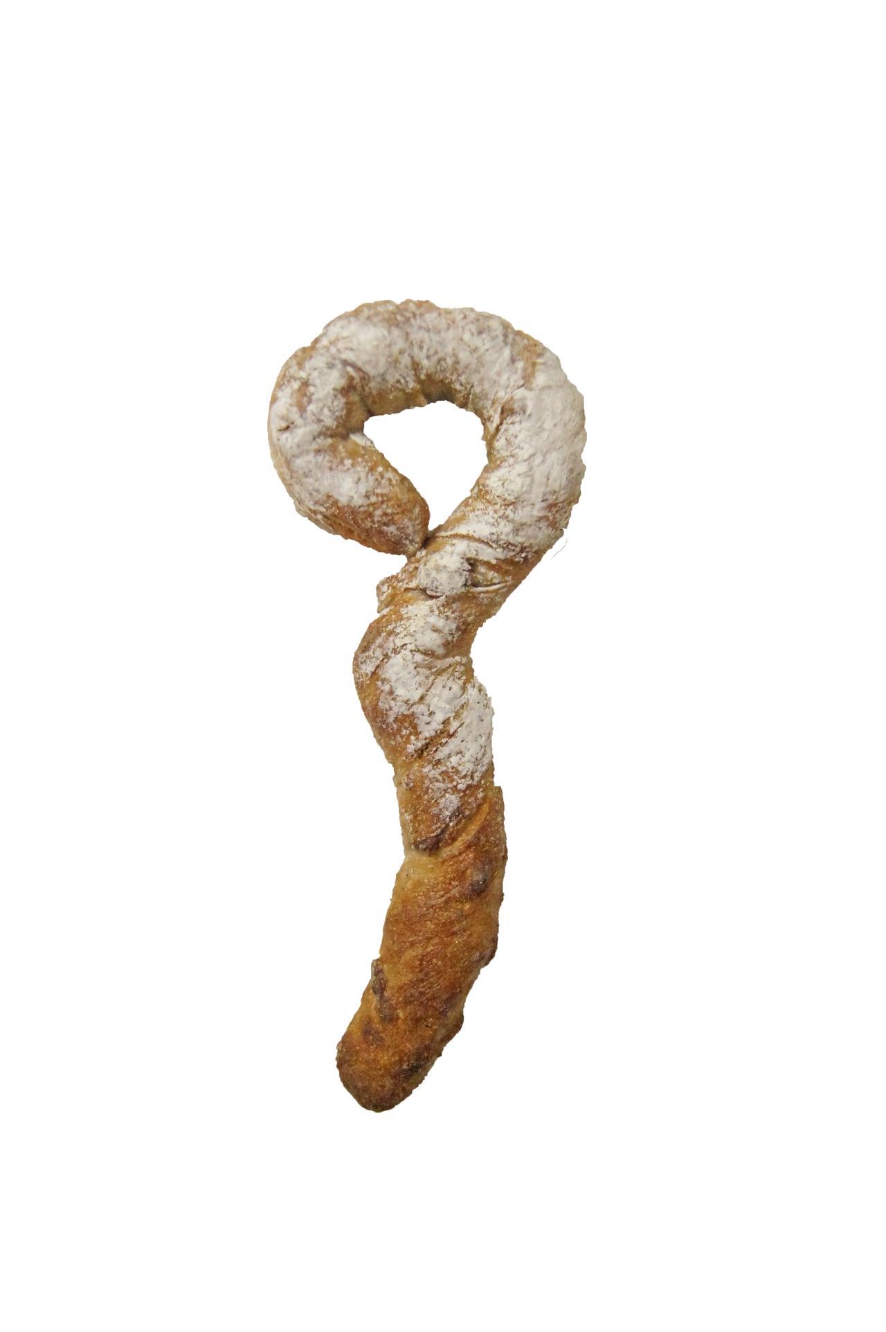 バゲット生地にアーモンド、クルミ、ヘーゼルナッツ、カソナードを練り込んだ。