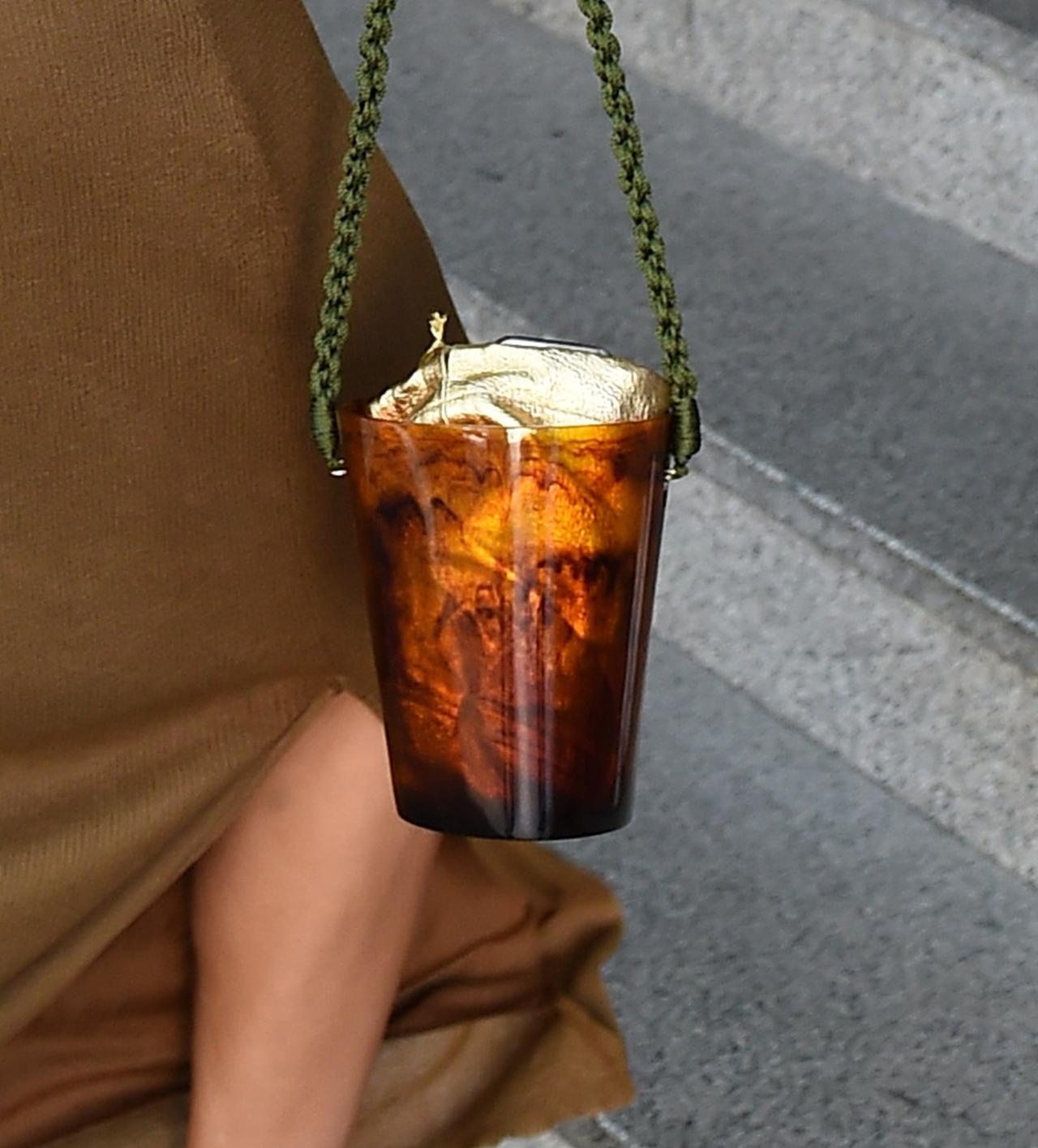 そして足元は、注目ブランドJacquemusのヒール部分が丸と四角になったサンダルで。セットアップに合わせて、小物の色もすべてブラウン系でまとめることで全体に統一感が出て◎。