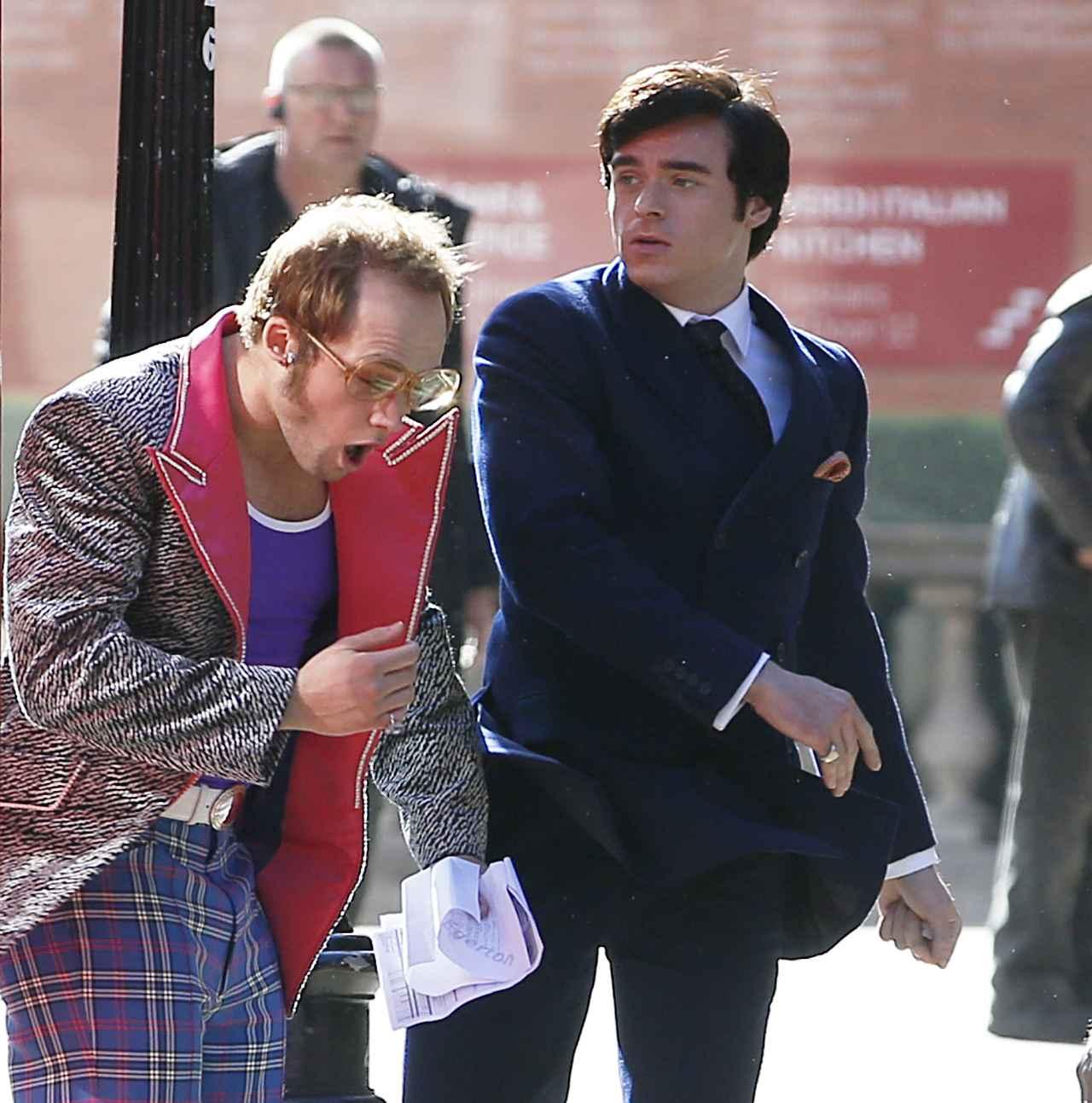 撮影現場は楽しげな雰囲気で、スタッフと一緒に記念撮影を撮る姿も見られた。映画『ロケットマン(原題)』は、2019年5月17日に全米公開予定。(フロントロウ編集部)