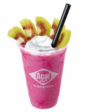 ビビッドなピンク色が特徴のレッドピタヤ(レッドドラゴンフルーツ)とココナッツミルクのコクのあるシェイクに、ココナッツミルクを植物性乳酸菌で発酵させたココナッツグルトのホイップと、不思議な色合いのレインボーレッドキウイをトッピング。