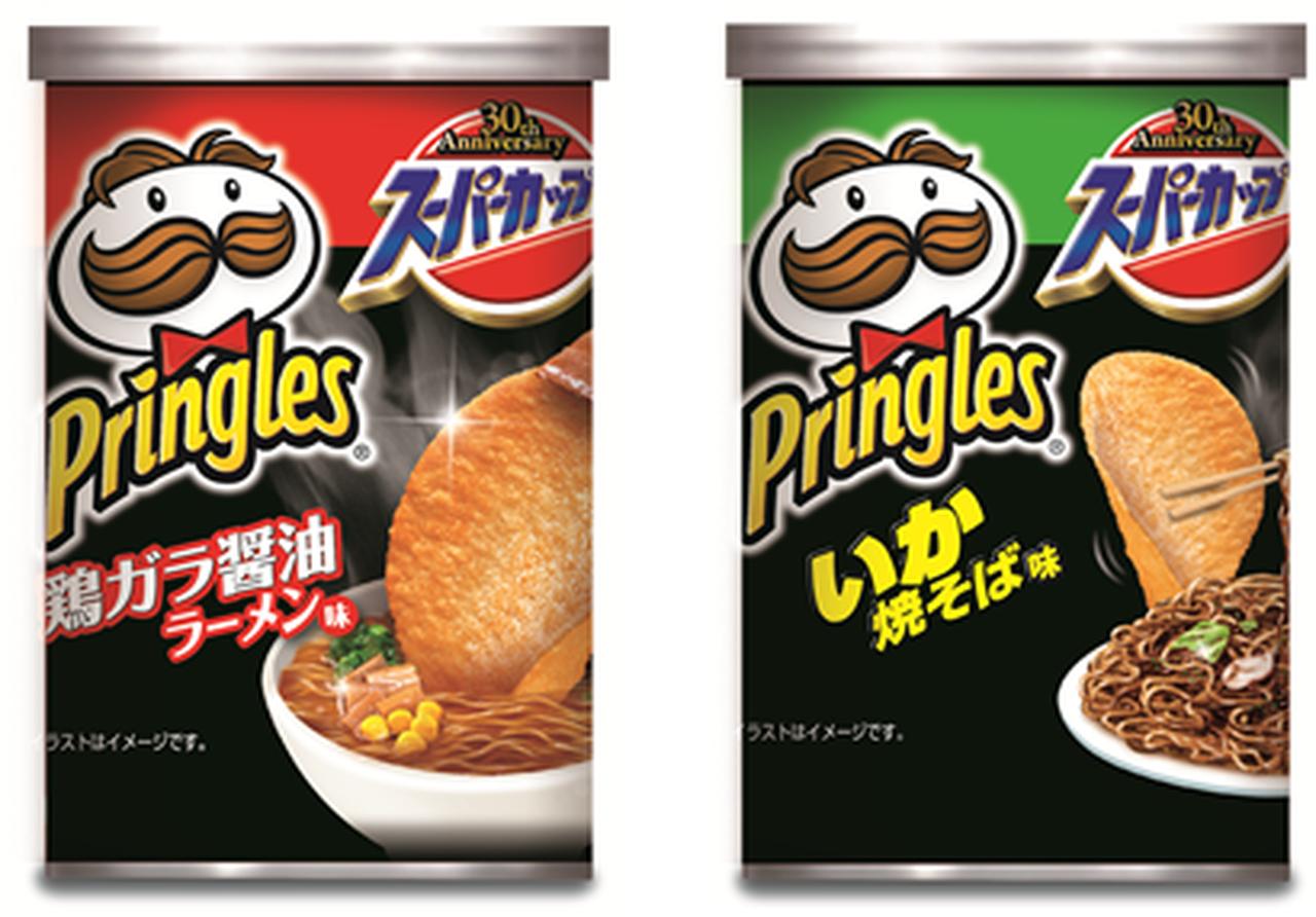 アメリカ発、成型ポテトチップス「プリングルズ」は、販売開始50周年を記念して、販売開始30周年を迎えたエースコック「スーパーカップ」とコラボレーションし、エースコックの定番商品「スーパーカップ しょうゆラーメン」 と「スーパーカップ 大盛りいか焼そば」の味を再現した 「エースコック 鶏ガラ醤油ラーメン味」と「エースコック いか焼そば味」を10月23日(火)より期間限定で販売。