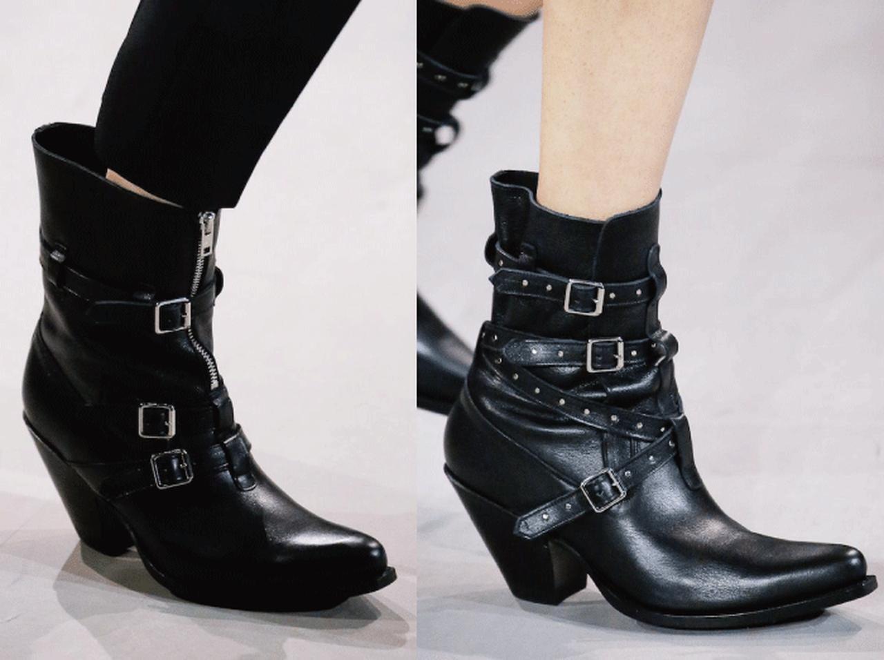 ブラックカラーをベースにエディらしいロックな要素を取り入れたスタイルが目立ち、ミニドレスにハードなブーツを合わせたスタイルも多く発表。