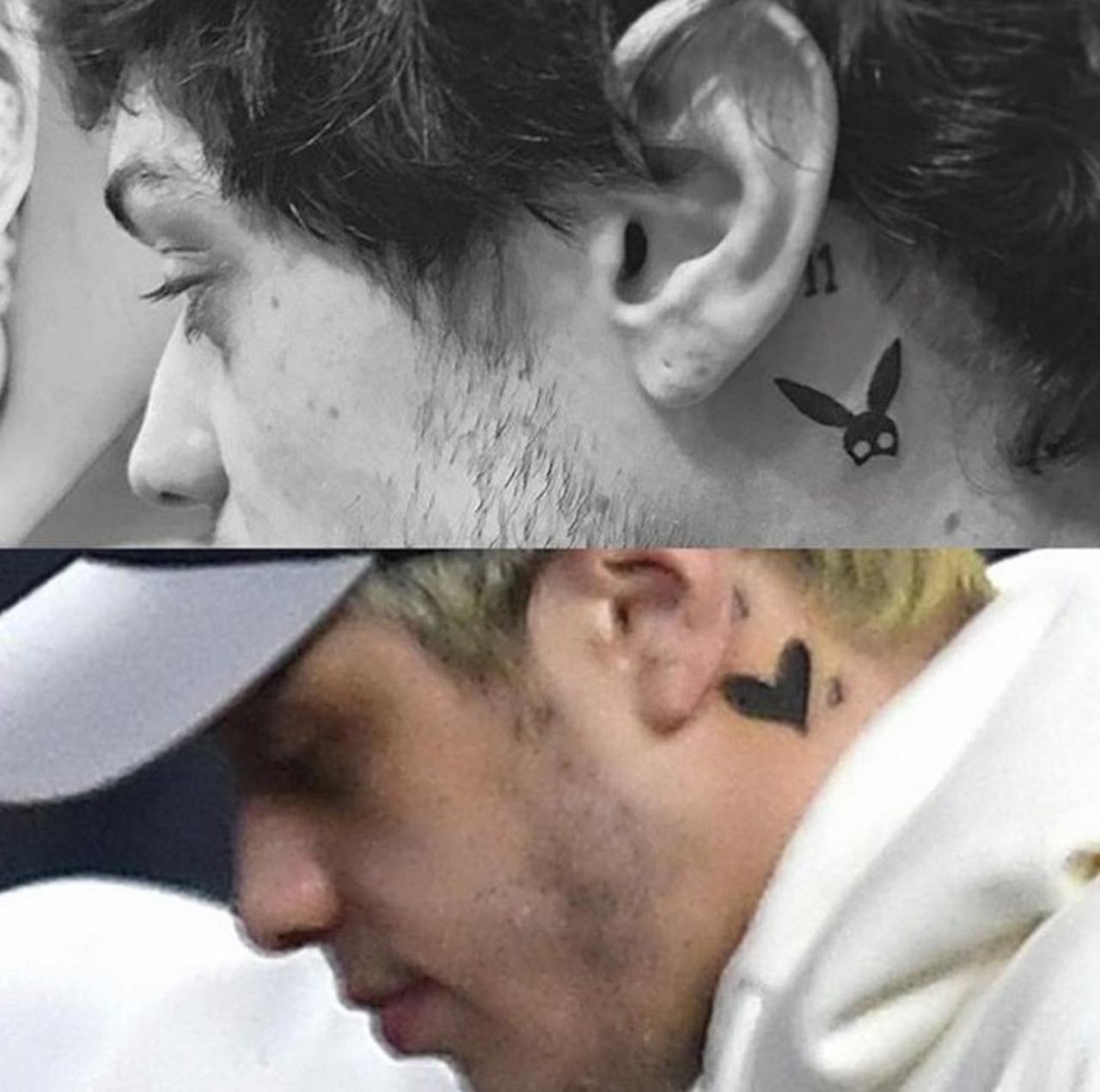 パパラッチが撮影した最近のアリアナとのツーショット写真では、ピートの首筋の「うさ耳マスク」のタトゥーが入っていたのと全く同じ位置に黒く塗りつぶしたハートのモチーフと、その隣にアルファベットの小文字でアリアナのイニシャルである「a」と入っているのが確認できる。