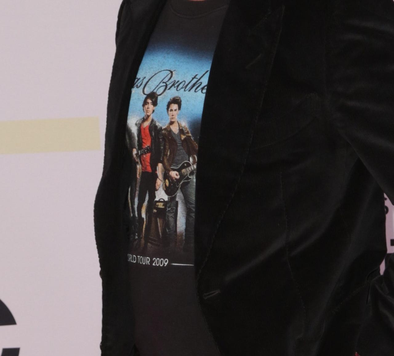 ジョンが着用しているTシャツをよく見てみると、どこかで見たことがある顔ぶれが。実はこのTシャツ、ディズニーの大ヒットTV映画『キャンプ・ロック』にも出演し、当時社会現象にもなった兄弟バンド、ジョナス・ブラザーズのツアーTシャツ。