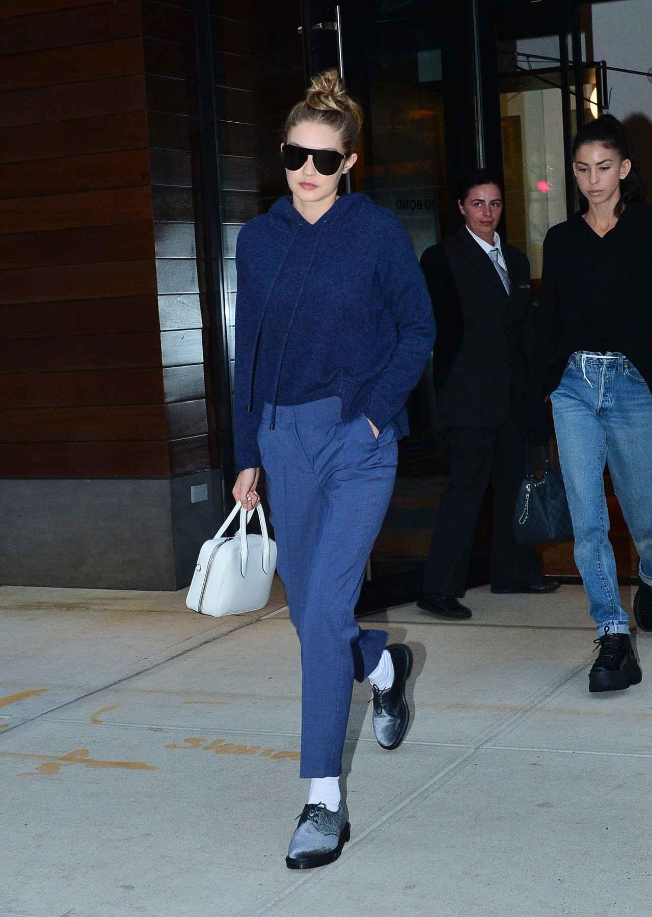 モデルのジジ・ハディッドがスポーティなフーディーをオシャレに着こなした。(フロントロウ編集部)