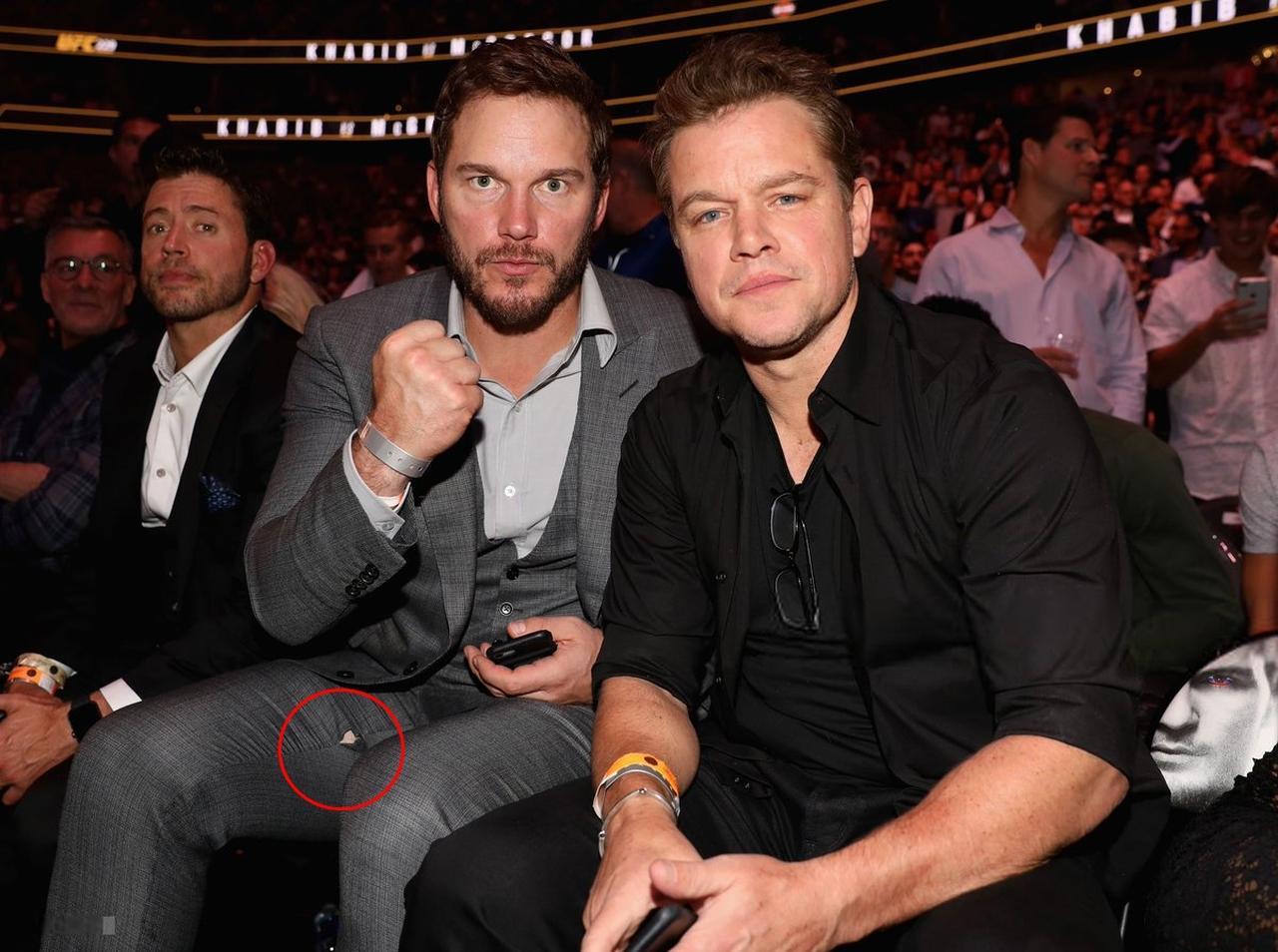 先日、アメリカで開催された総合格闘技団体UFC主催の試合を生観戦した、映画『ジュラシック・ワールド』や『ガーディアンズ・オブ・ギャラクシー』シリーズの主演俳優クリス・プラットのズボンに思わぬハプニングが発生。