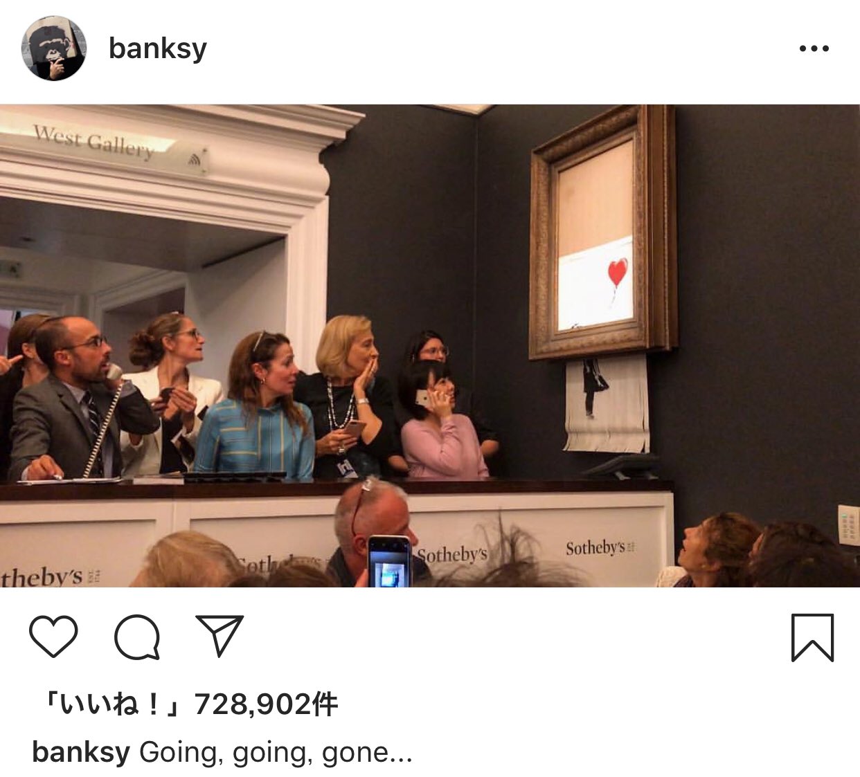 Banksyの作品が1.5億円で落札直後に自滅、落札者はどうする