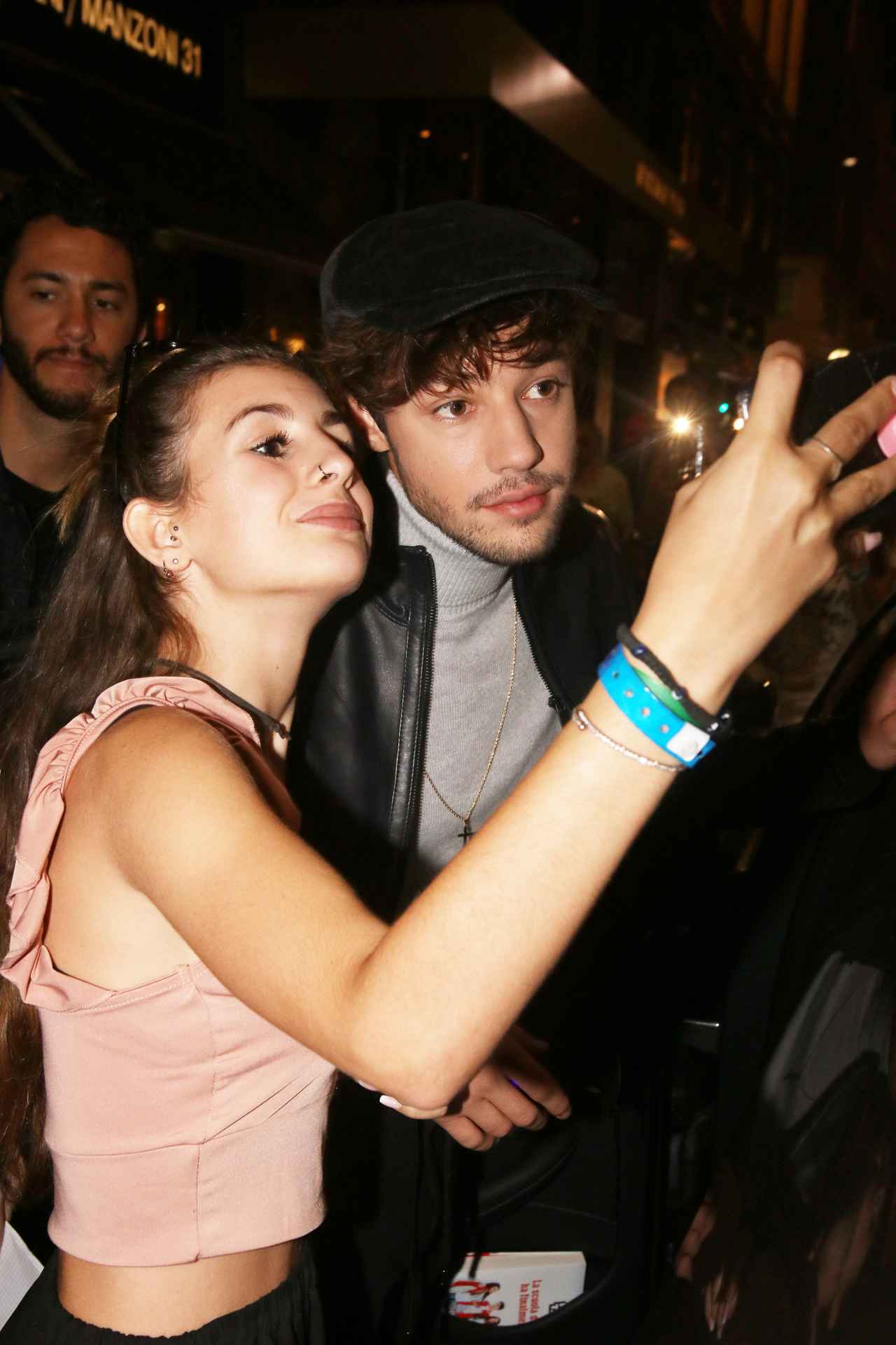 ミラノ・ファッションウィークでファンと写真撮影するキャメロン。