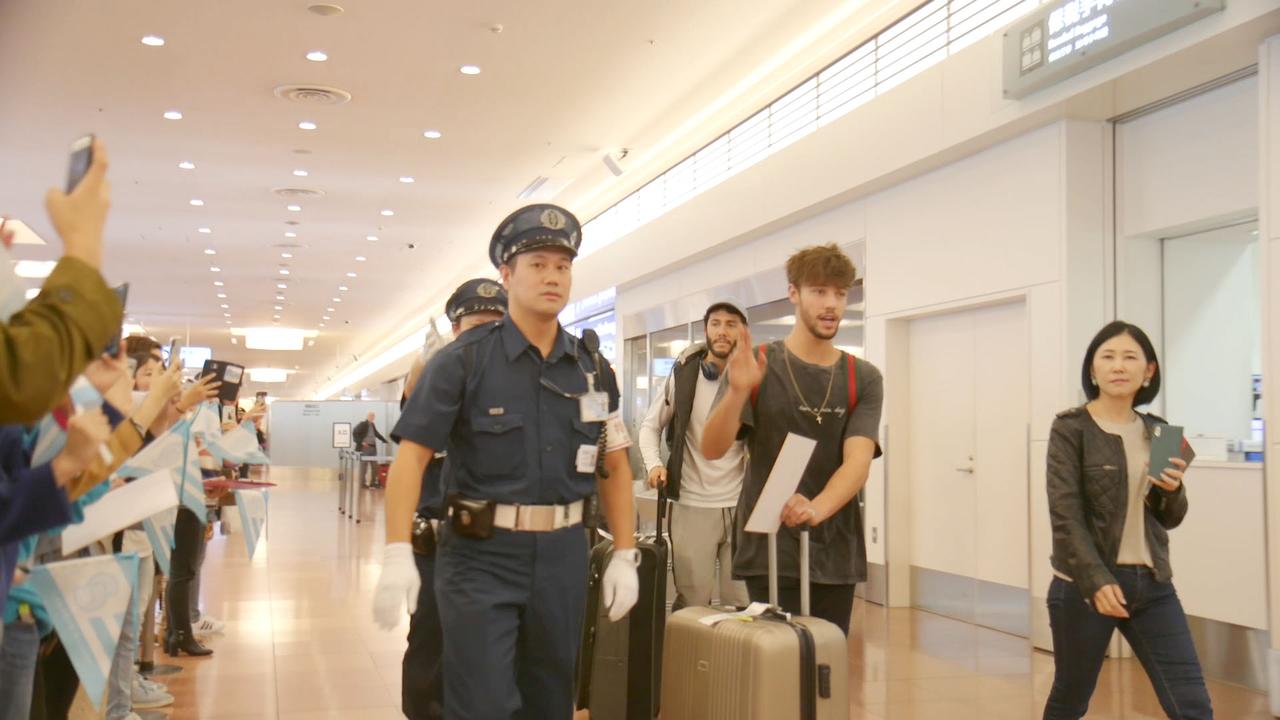 「14日に羽田空港に着くから会いに来てね!」というキャメロン・ダラスのSNSでの来日予告があったこともあり、来日当日には、到着ゲートにプラカードやプレゼントを持ったファンの群衆がキャメロンをお出迎え。