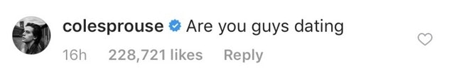 その写真を見たコールが、「君たち(コールとリリのこと)付き合ってるの?」という粋なコメントを残して話題になっている。
