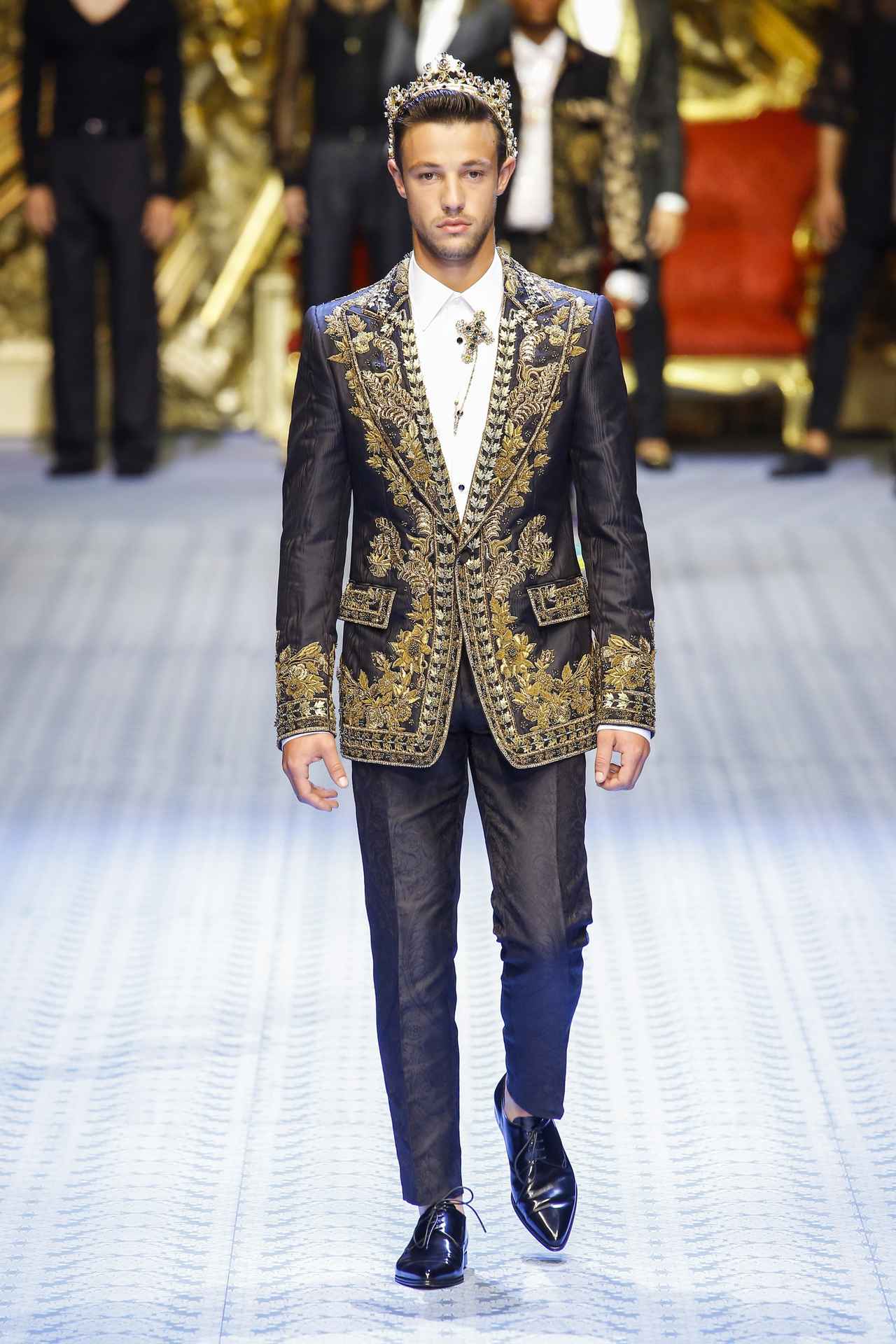 ミラノ・ファッションウィークでDolce & Gabbana2019春夏コレクションのランウェイを歩くキャメロン・ダラス