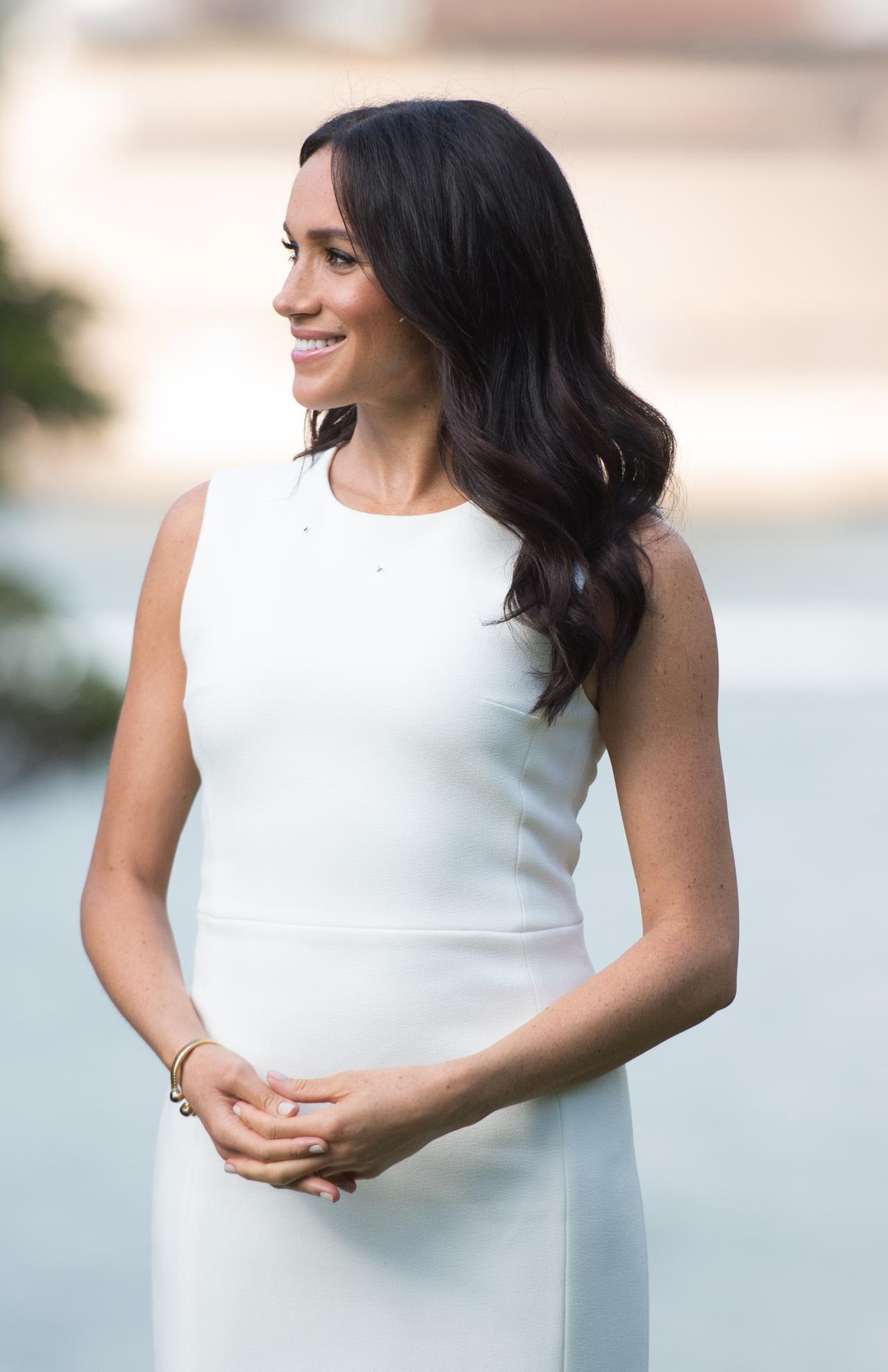 今年5月に結婚した英王室のヘンリー王子とのあいだに第一子を妊娠中であることを発表したメーガン妃が、妊娠を公表後初めて公の場に登場。タイトな白のワンピース姿で、若干ふくらみかかったお腹を初披露した。