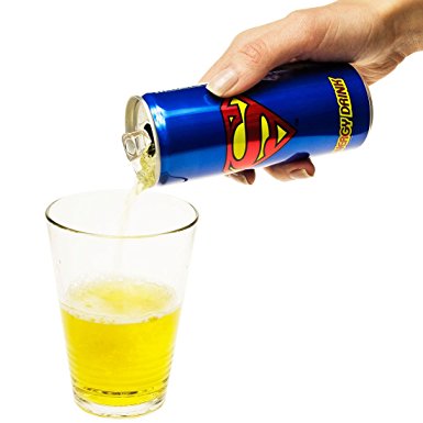 そんなスーパーマンの容姿を特徴付ける、青いコスチュームと胸部の「S」のシンボルマークをシンボリックに缶の中央に配した、シンプルでインパクトのあるデザインが特徴のエナジードリンクが誕生。