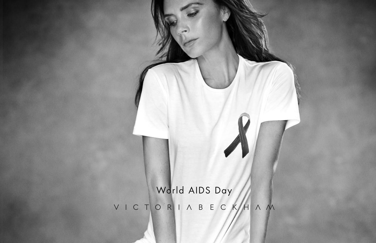 1日は世界エイズデー。写真は2014年の世界エイズデーにチャリティTシャツを販売したヴィクトリア・ベッカム。